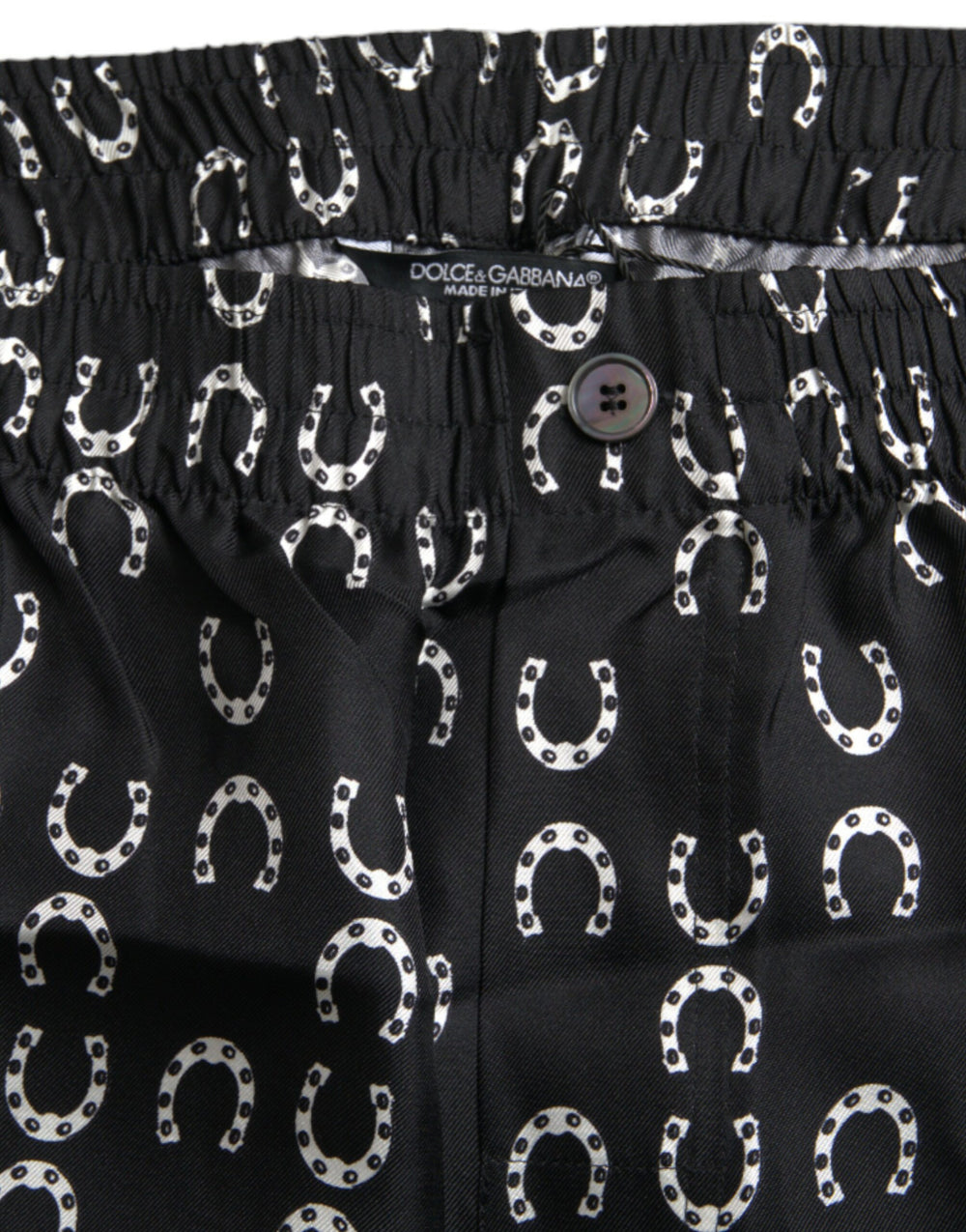 Gorgeous brand new with tags 100% Authentic Dolce & Gabbana silk horseshoe print pants. Style: Silk pants Colour: Black Fitting: Regular fit Material: 100% Silk Stretchy waist Logo details Made in Italy Very exclusive and high craftsmanship