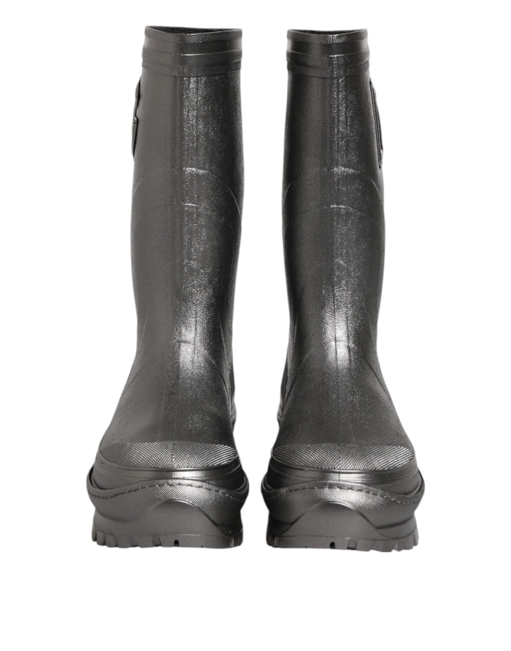 Dolce & Gabbana Black Argento Pull On Rain Boots Shoes