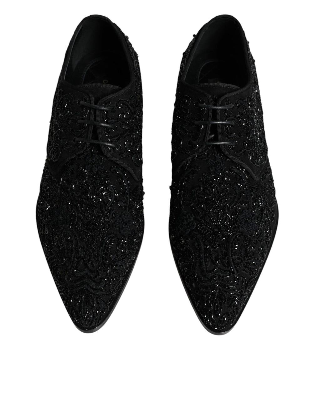 Dolce & Gabbana Black Embellished Suede Derby Formal Shoes