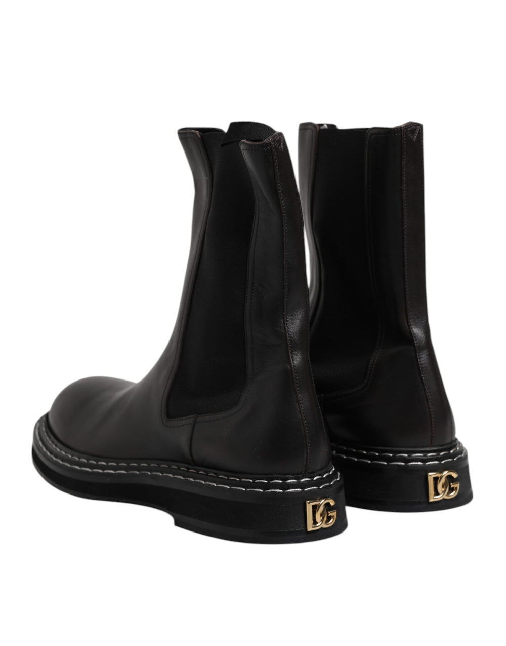 Dolce & Gabbana Black Leather Mid Calf Boots Flats Shoes