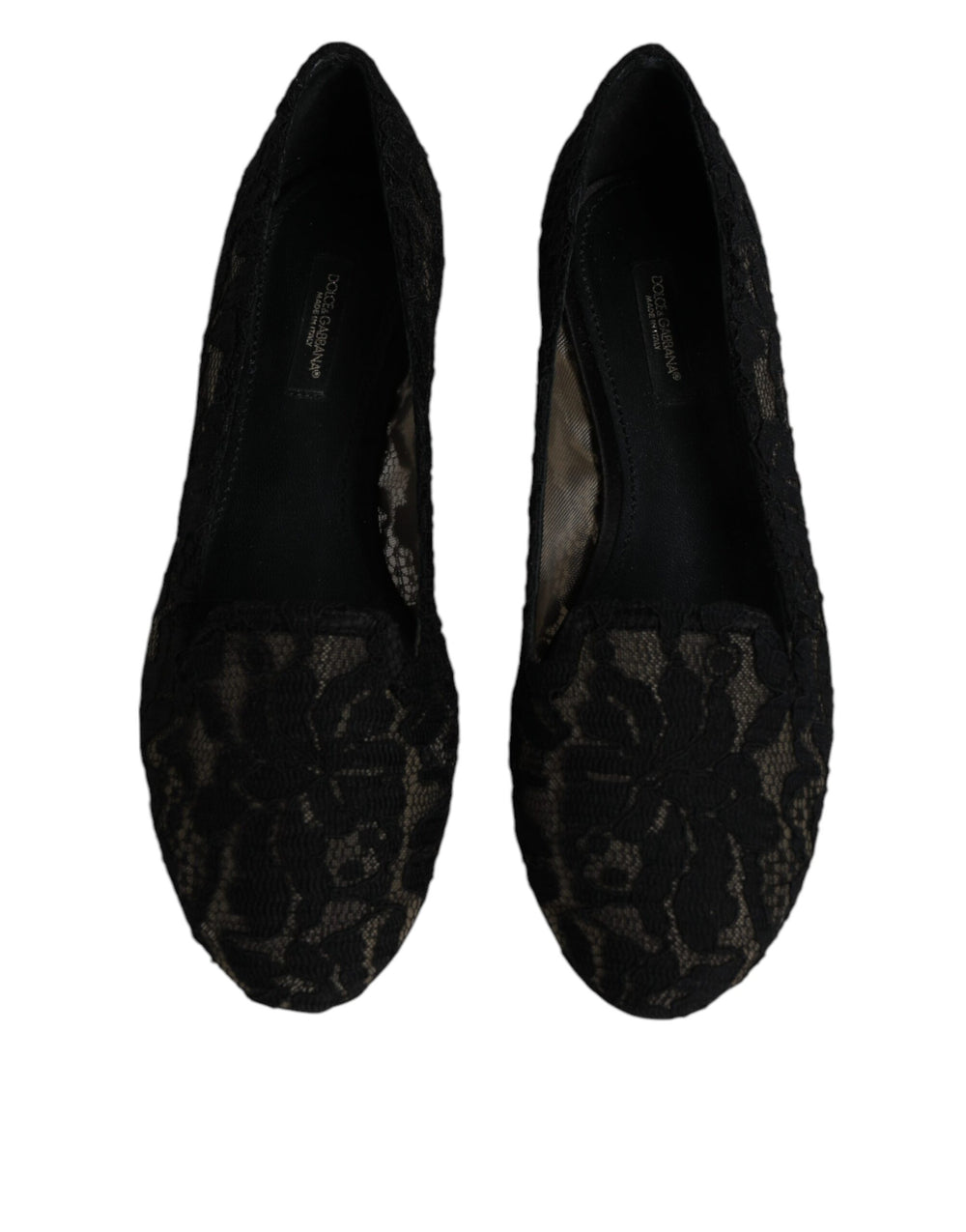 Gorgeous preowned, 100% Authentic Dolce & Gabbana elegant flat shoes. Model: Elegant vally flat shoes Colour: Black Material: 56% Viscose 39% Cotton 5% Nylon Lining: 100% Leather Sole: 100% Leather, 100% Rubber Logo details Very high quality and comfort Made in Italy