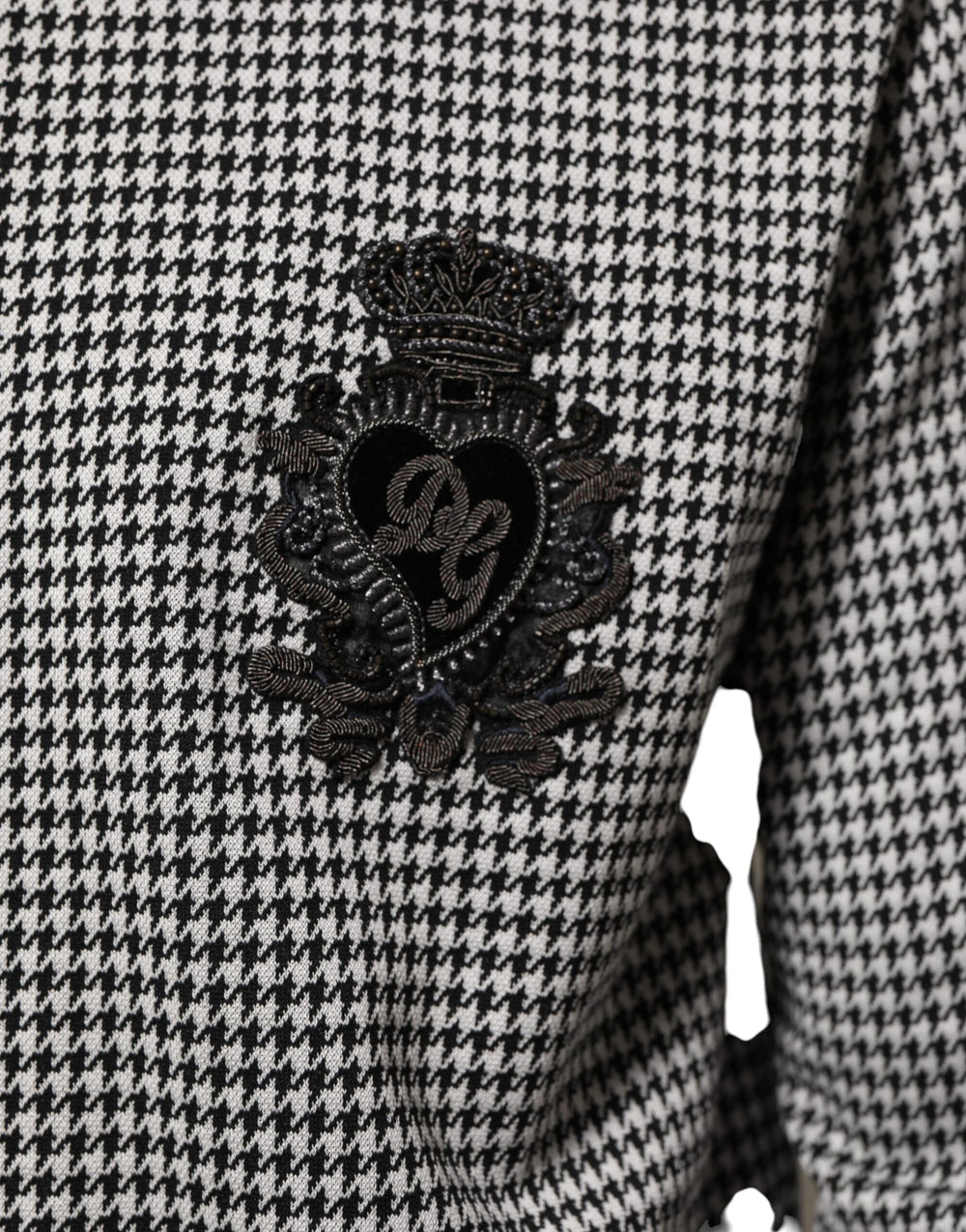 Dolce & Gabbana Black White Houndstooth Wool Crest Jacket Sweater