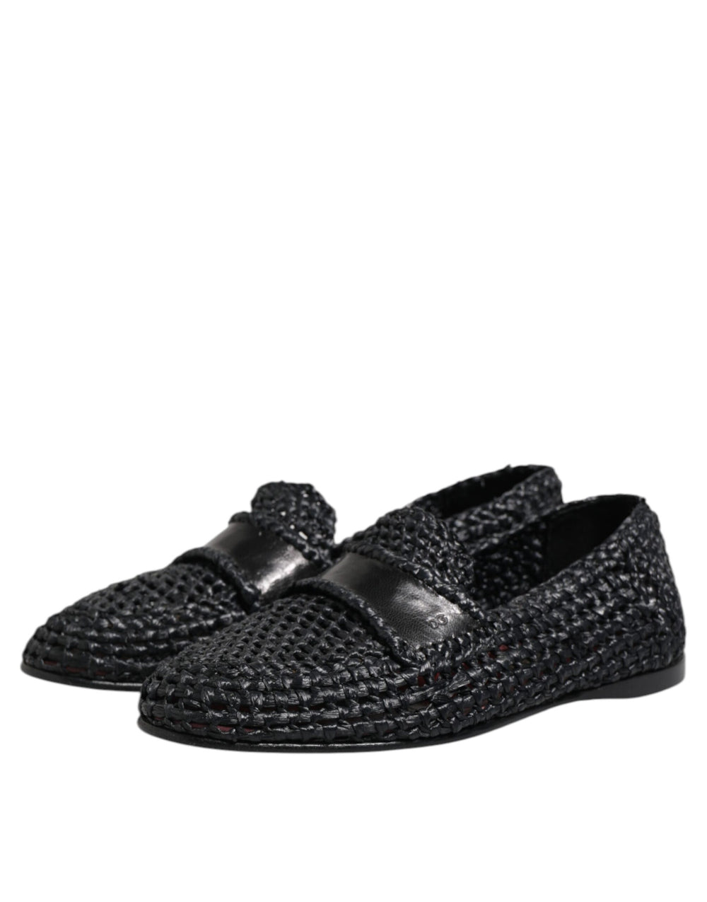 Dolce & Gabbana Black Woven Leather Slip On Loafers Men Shoes