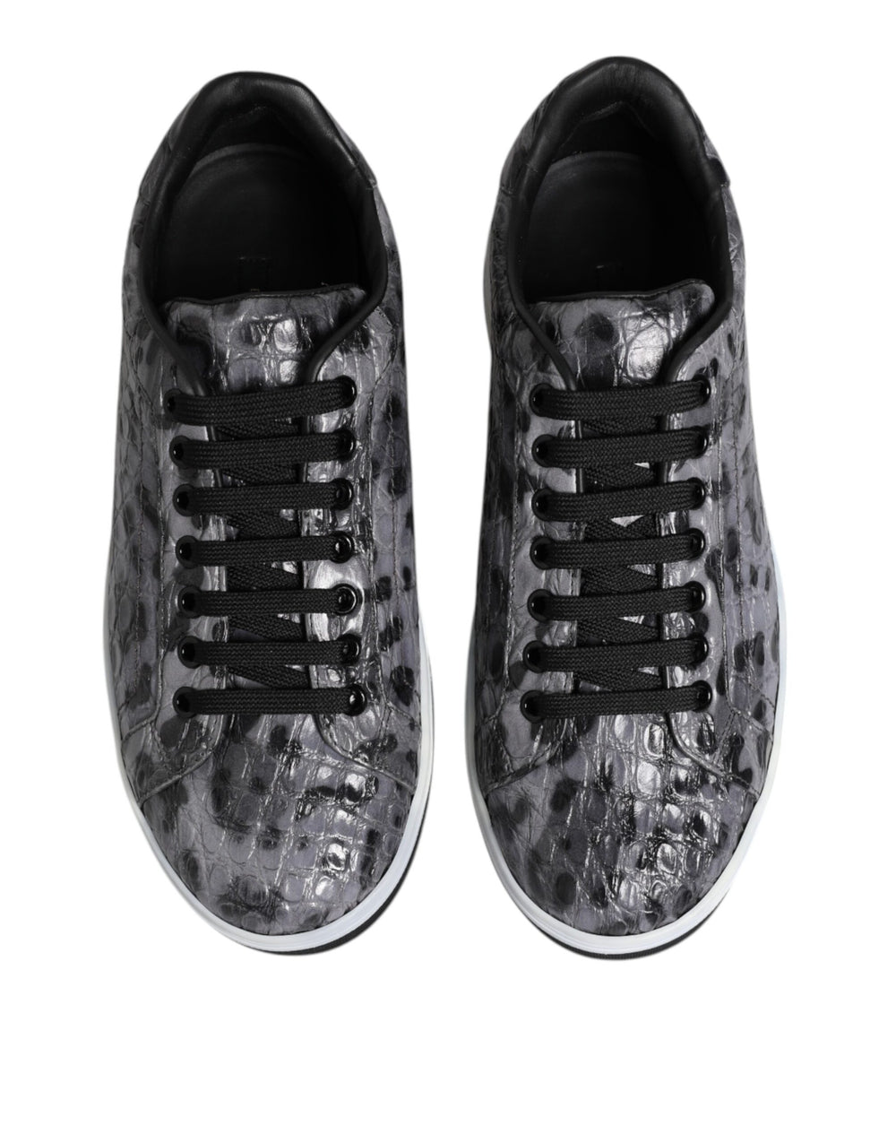 Dolce & Gabbana Gray Leather Leopard Low Top Sneakers Shoes