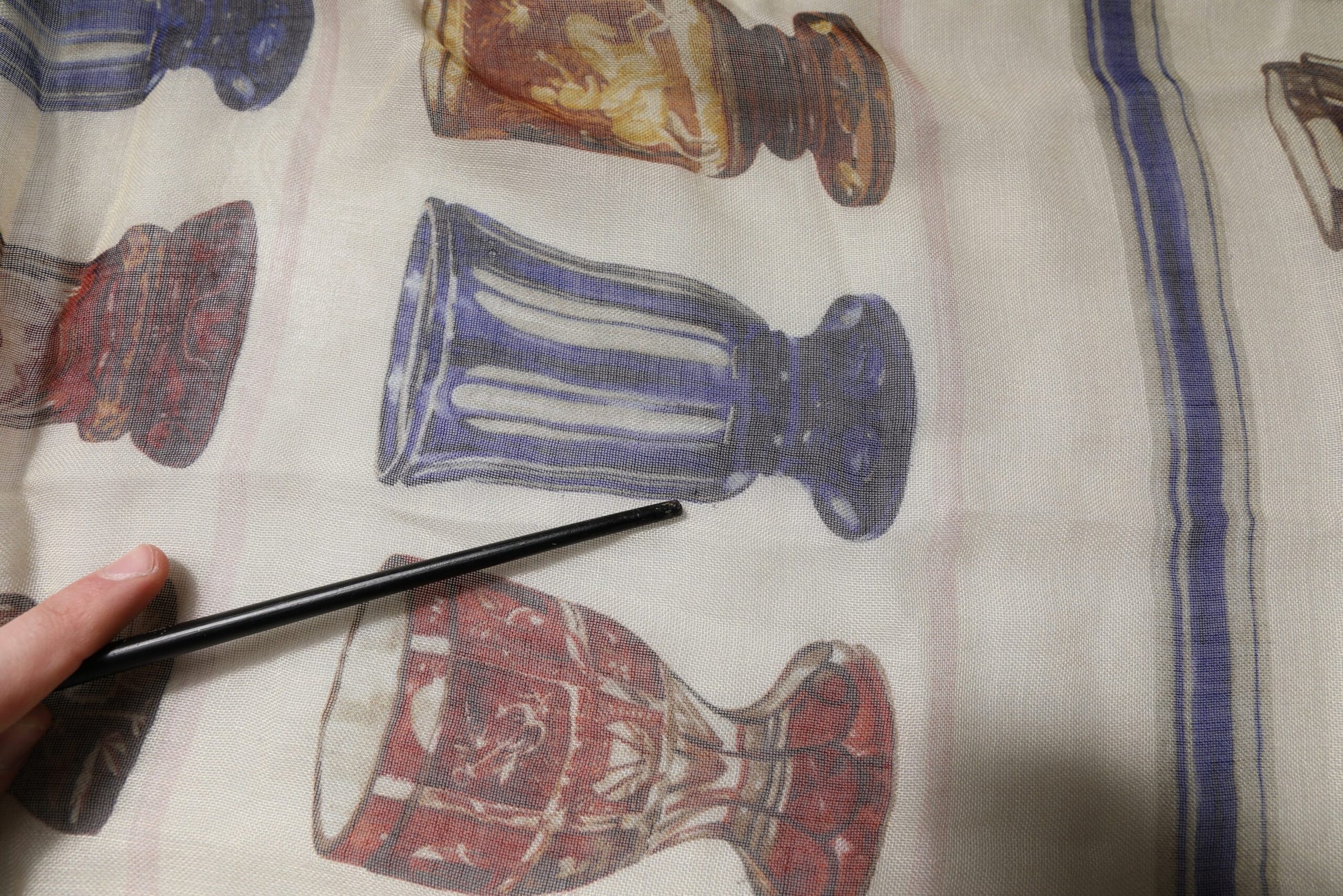 This item has a minor defect, there are pulled threads on the scarf (see pictures for details).