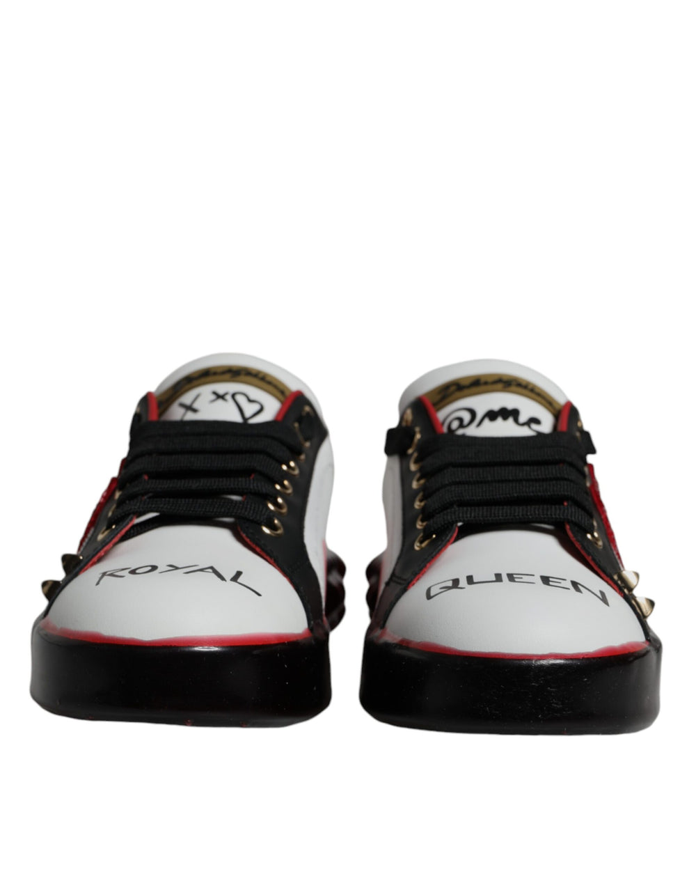 Dolce & Gabbana White Red Crystals Leather Portofino Sneakers Shoes