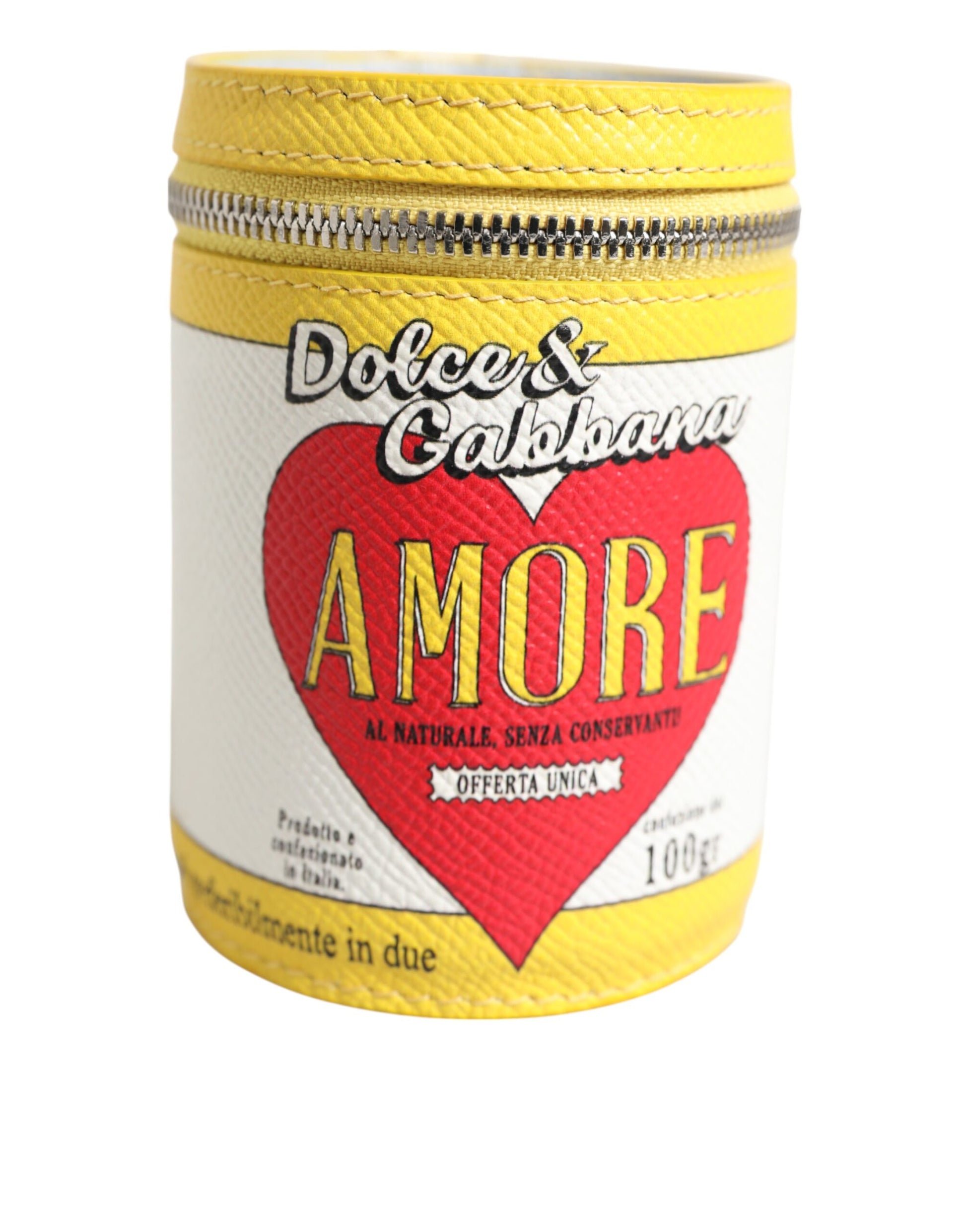 Absolutely stunning, 100% Authentic, brand new with tags Dolce & Gabbana leather key ring.This playful accessory is designed in the shape of a cylindrical case featuring the bold “Amore” heart print in red, yellow, and white, inspired by vintage Italian packaging. Complete with a silver-tone key ring, lobster clasp, and DG logo charm, it can be used as a key holder, bag charm, or mini coin case.