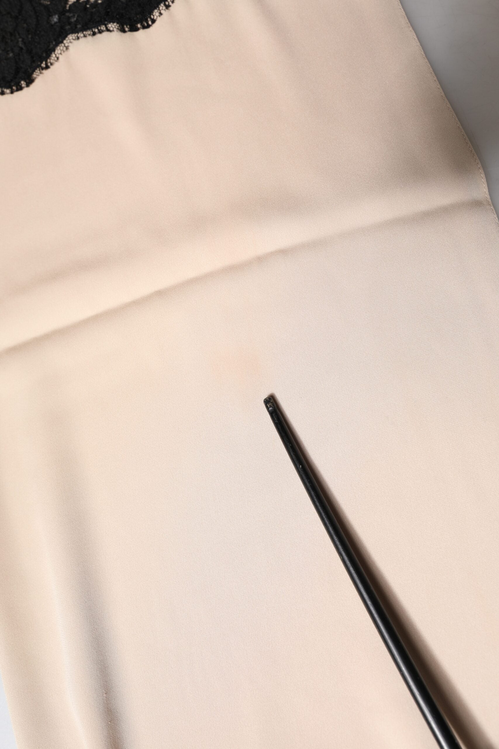 Dolce & Gabbana Beige Floral Lace Trim Silk Neck Wrap Scarf