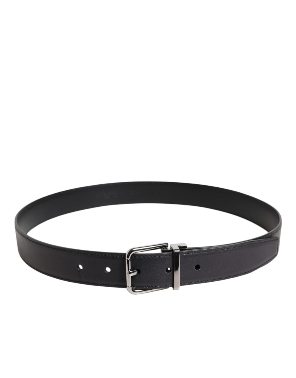 Dolce & Gabbana Black Classic Calf Leather Silver Buckle Belt