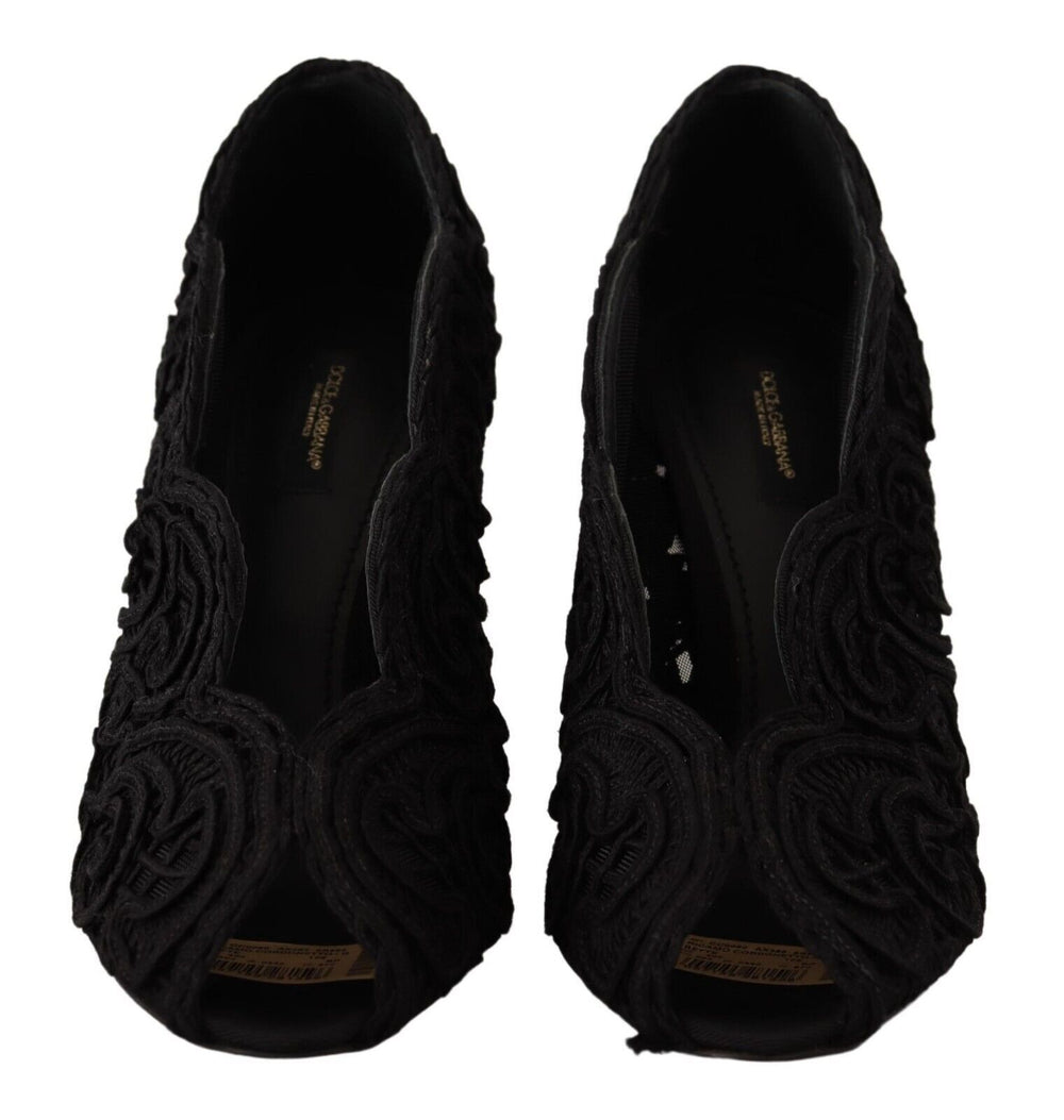 Dolce & Gabbana Black Cordonetto Ricamo Pump Open Toe Shoes