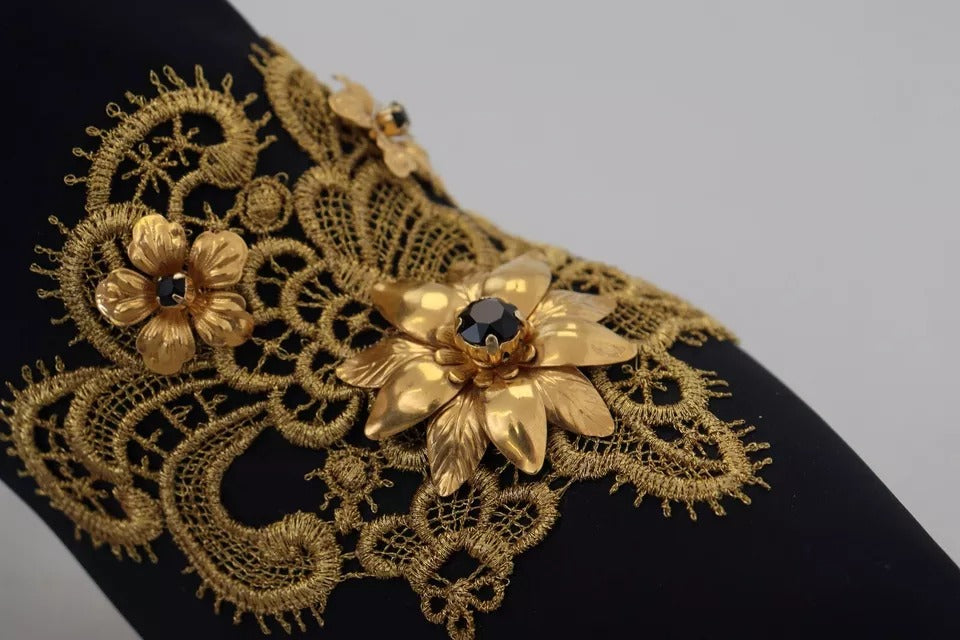 Dolce & Gabbana Black Gold Embroidery Slip On Boots Shoes