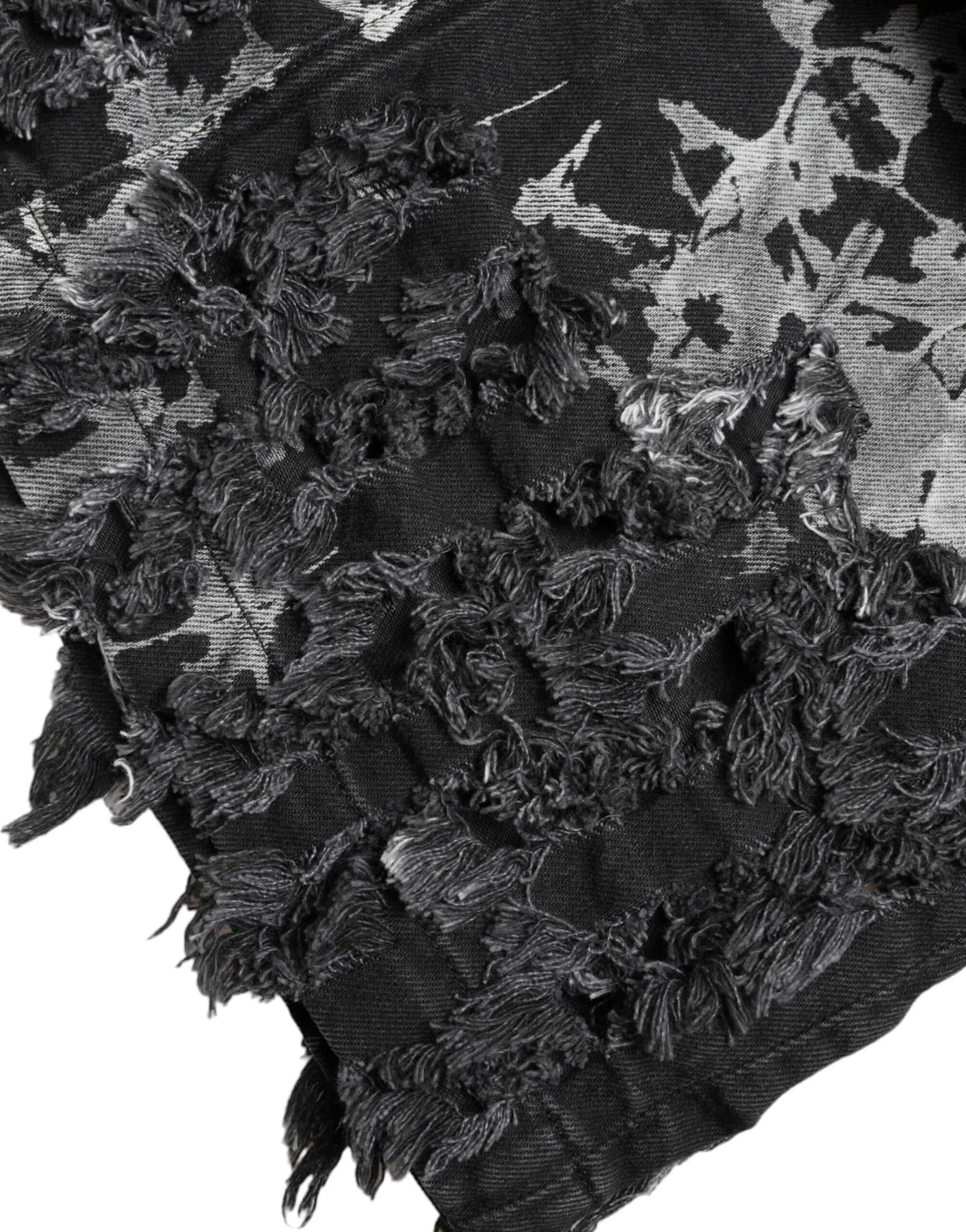 Dolce & Gabbana Black Gray Lace Cotton High Waist Denim Mini Skirt