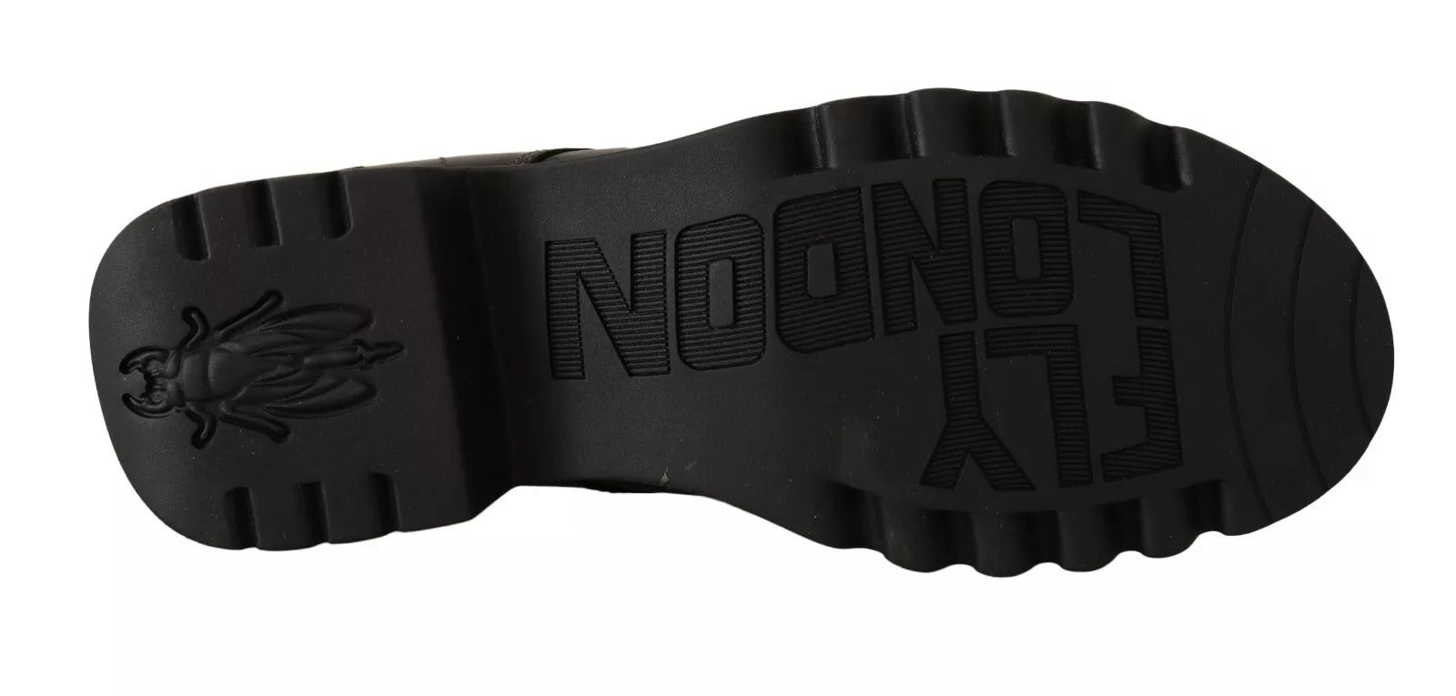 FLY LONDON Black Leather Low Top Lace Up Women Oxford Shoes