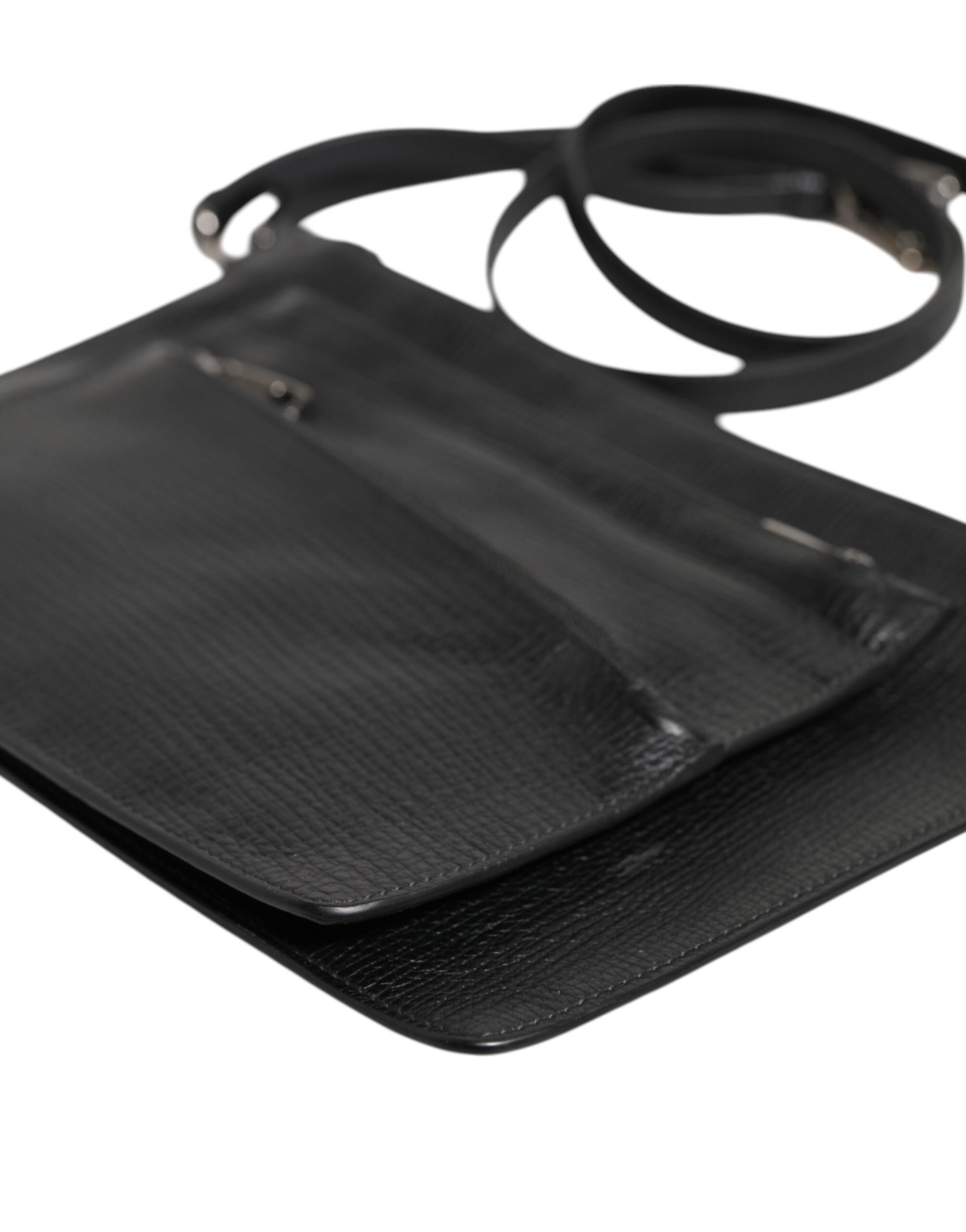 Dolce & Gabbana Black Palmellato Leather Logo Plaque Shoulder Borse Bag