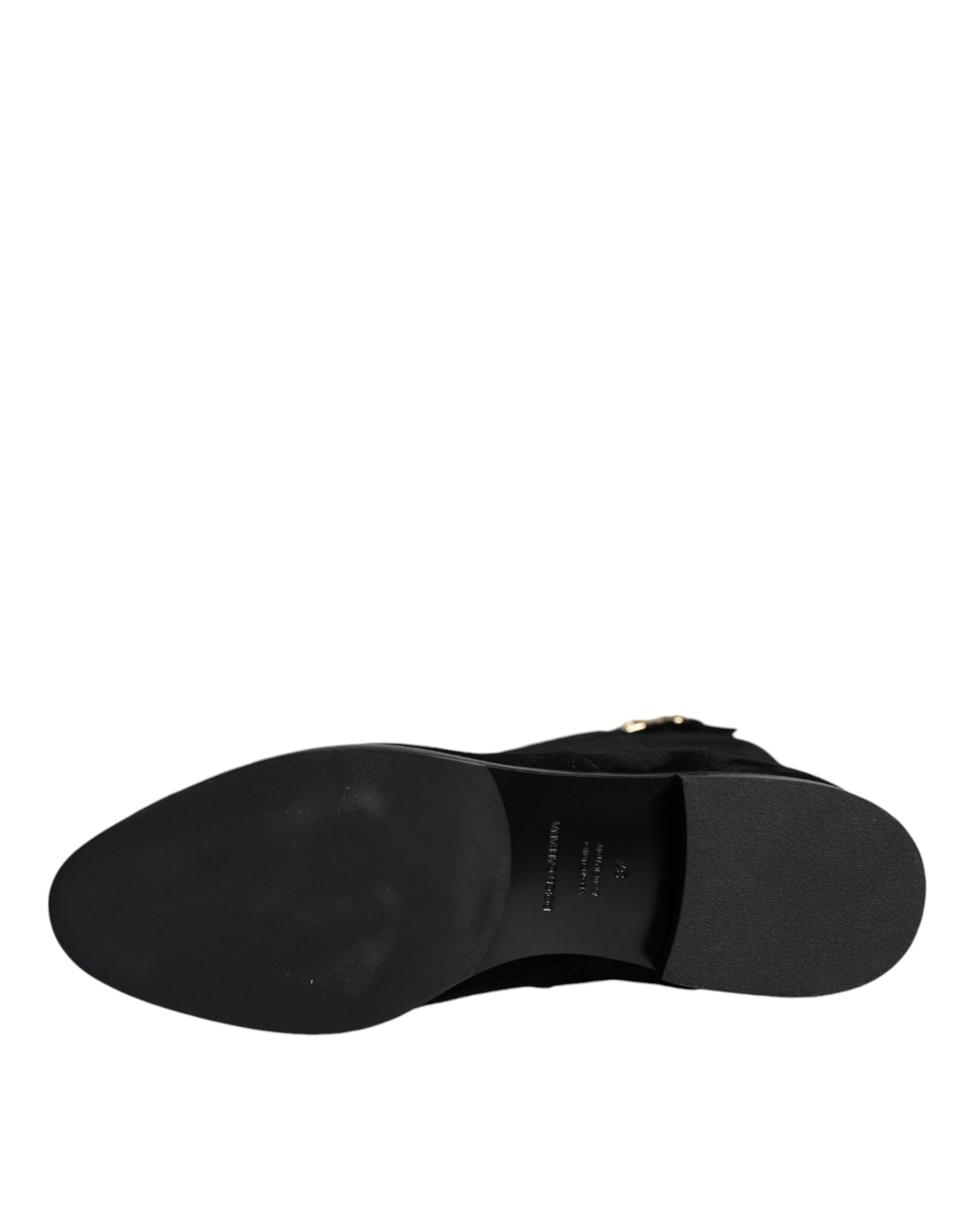 Dolce & Gabbana Black Suede Leather Knee High Boots Shoes