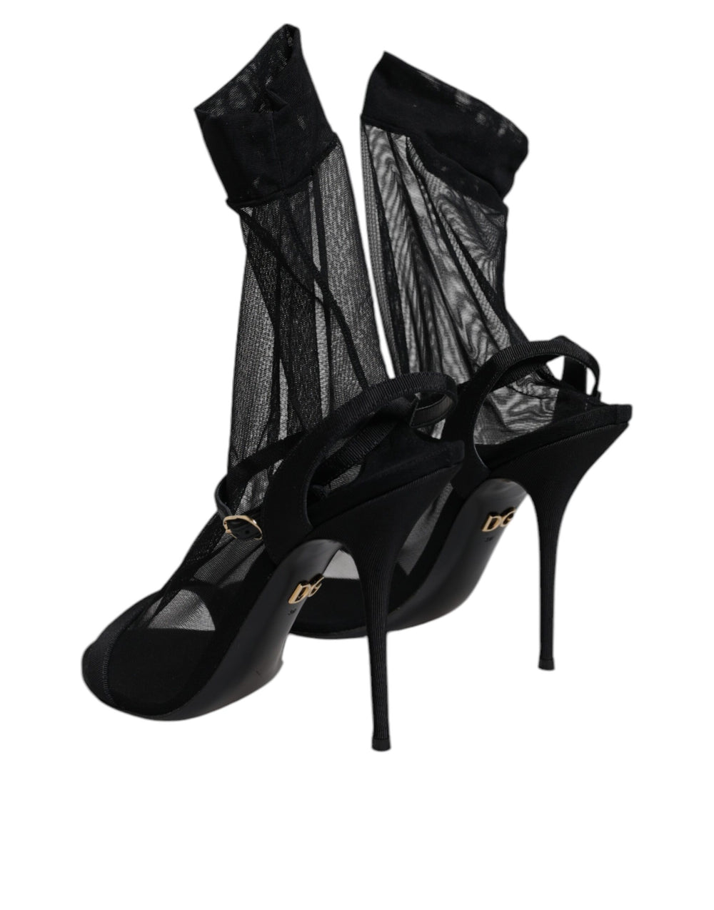 Gorgeous brand new, 100% Authentic Dolce & Gabbana heels sandals shoes. Art#: CT0644 AX880 Model: Heels sandals Color: Black Material: 65% Nylon 22% Viscose 12% Elastane 1% Leather Buckle closure Leather bottom sole Logo details Made in Italy Very exclusive and high craftsmanship