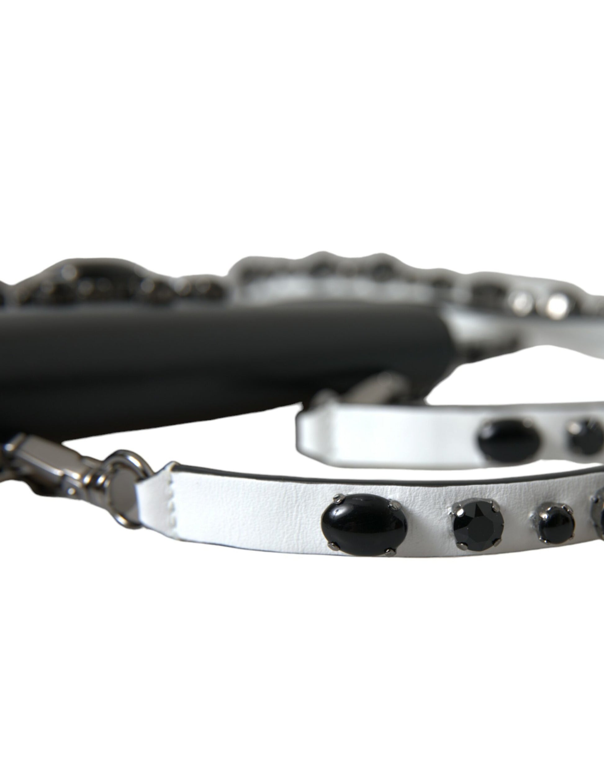 Dolce & Gabbana Black White Leather Crystal Embellished Cardholder Wallet