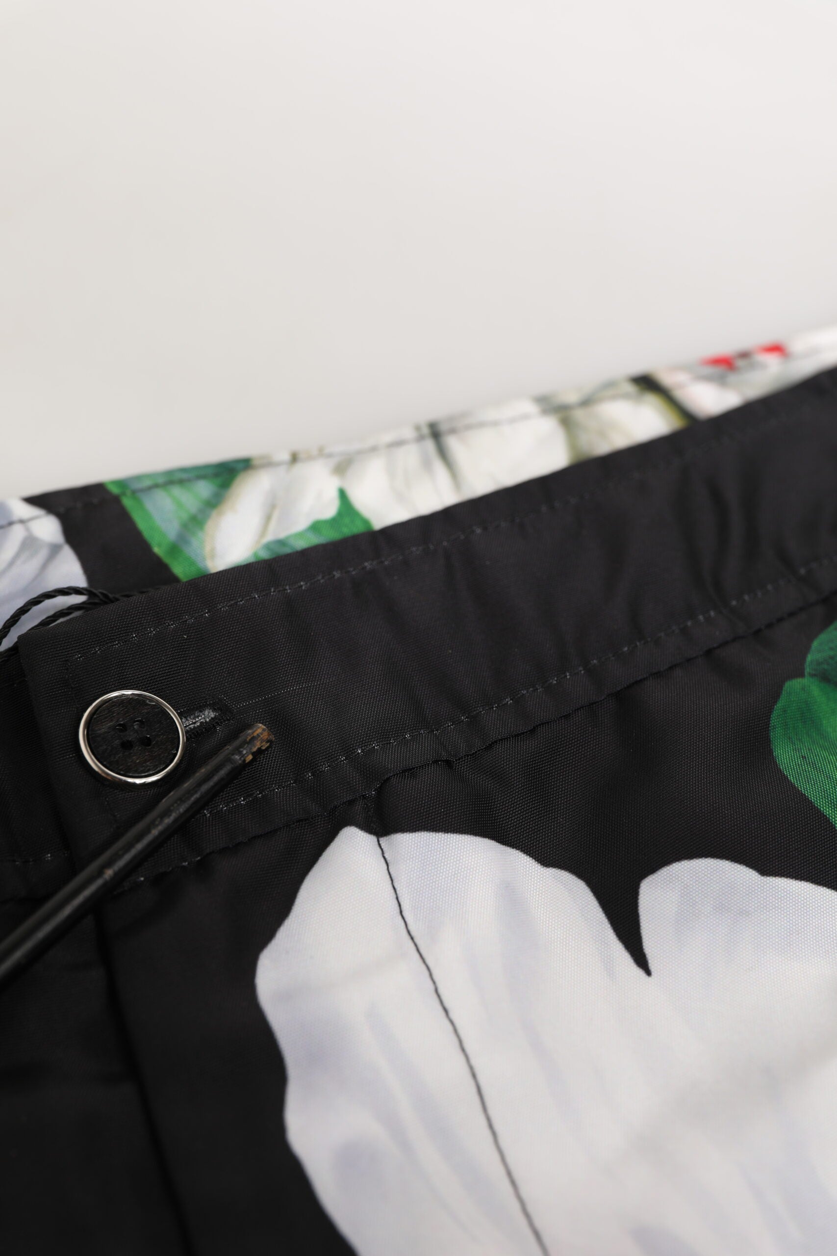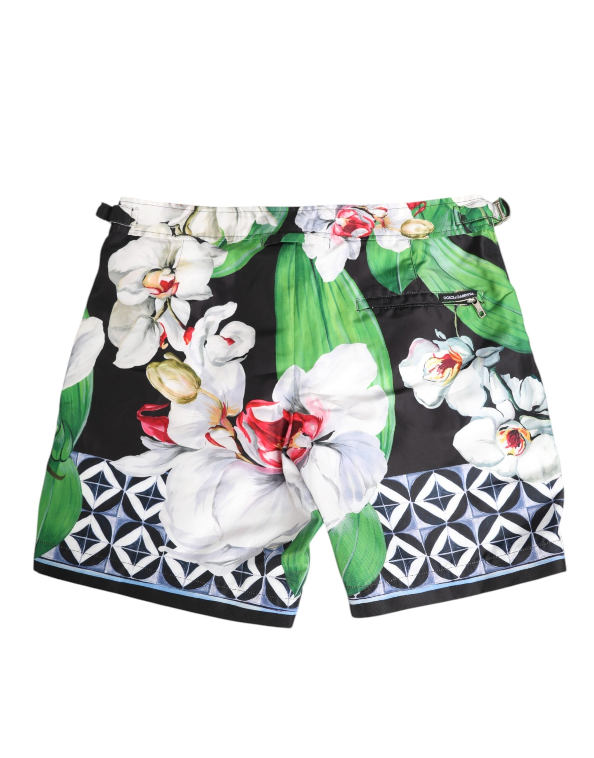Dolce & Gabbana Black White Polyester Floral Orchid Print Shorts