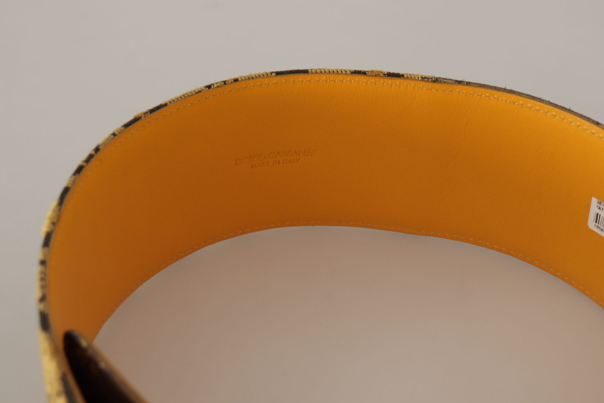Dolce & Gabbana Blue Floral Patchwork Leather Wide Waist Buckle Belt