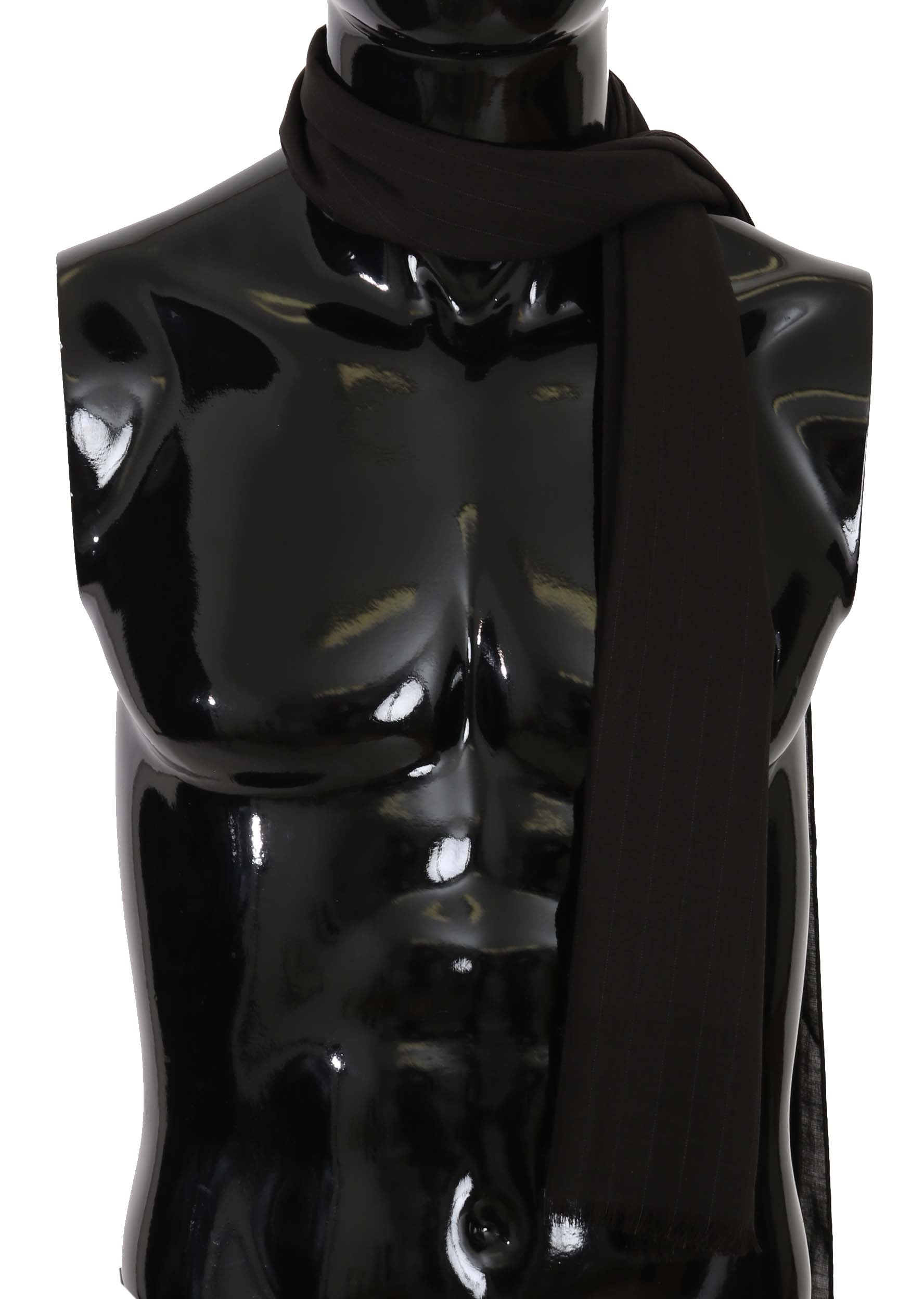 Dolce & Gabbana Dark Gray Virgin Wool Striped Pattern Wrap Scarf
