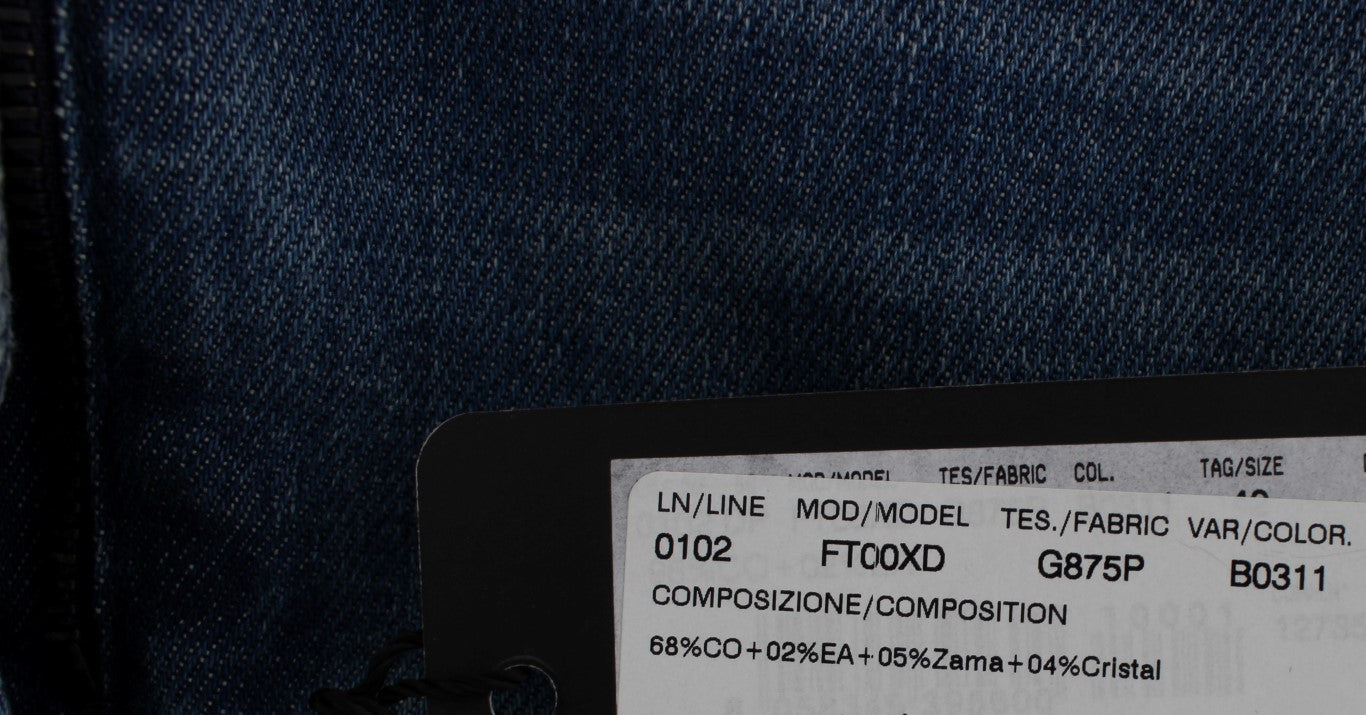 Material: 68% Cotton, 15% Brass, 5% Zama, 4% Crystal, 4% Plastic, 2% Elastane, 2% Glass