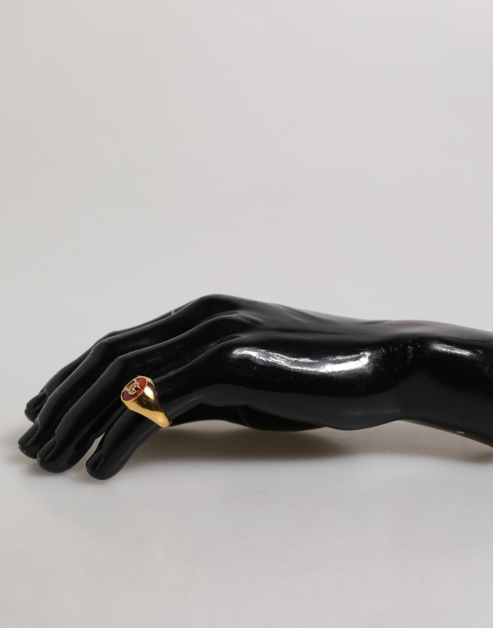 Gorgeous brand new, 100% Authentic Dolce & Gabbana gold tone brass logo ring. Color: Gold, Red Material: 95% Real Brass 5% Enamel Logo details Made in Italy