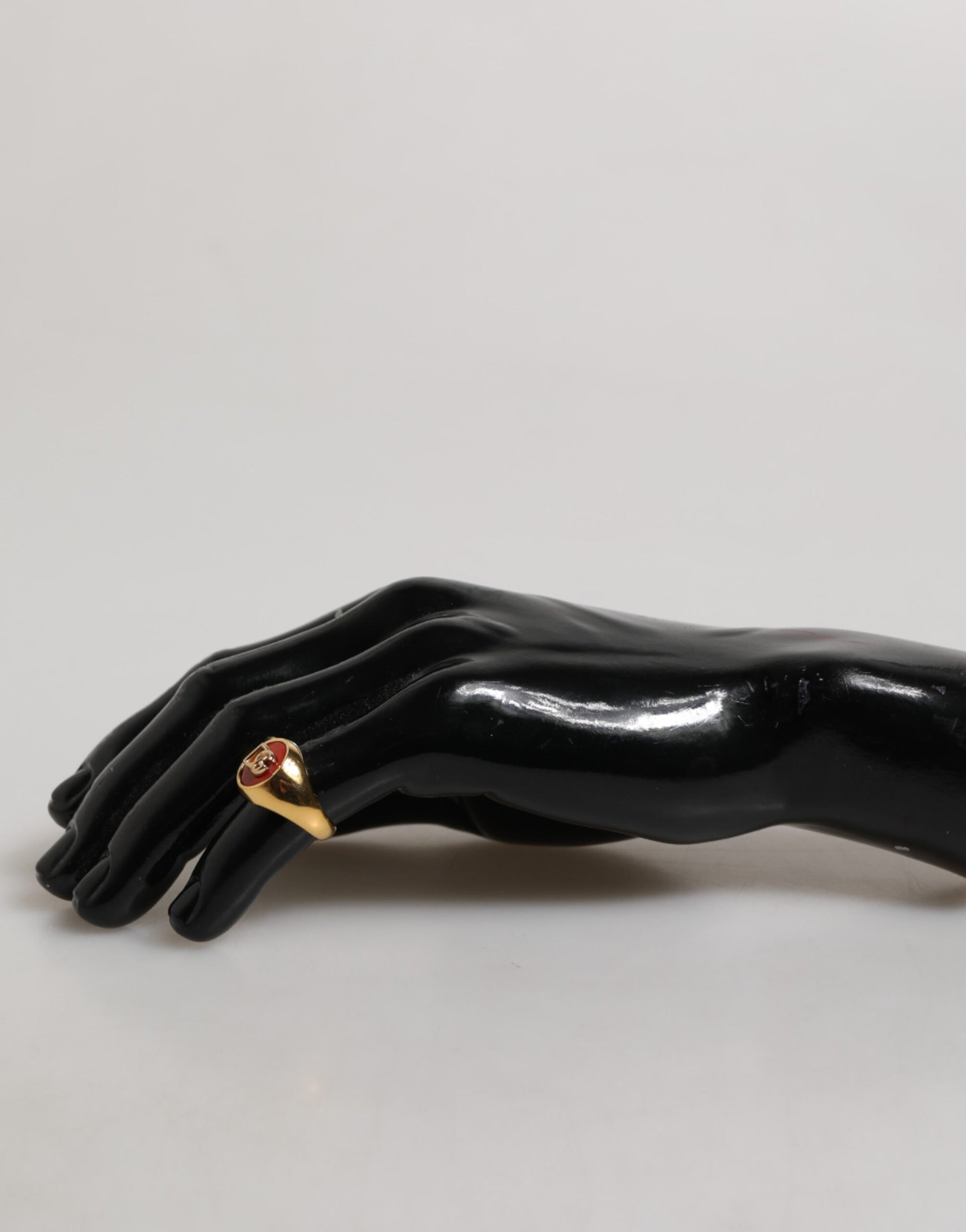 Dolce & Gabbana Gold Tone Real Brass Round Red DG Logo Men Ring