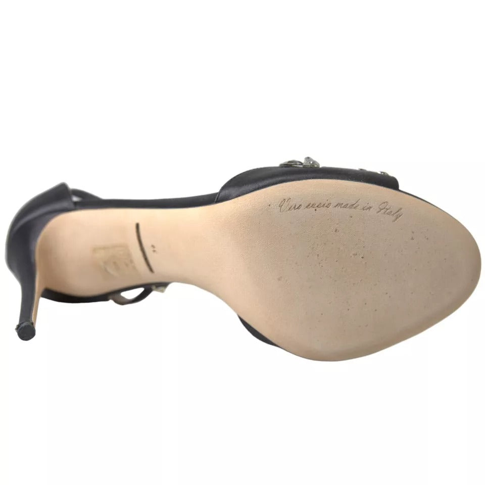 Dolce & Gabbana Gray Satin Ankle Strap Crystal Sandals Shoes