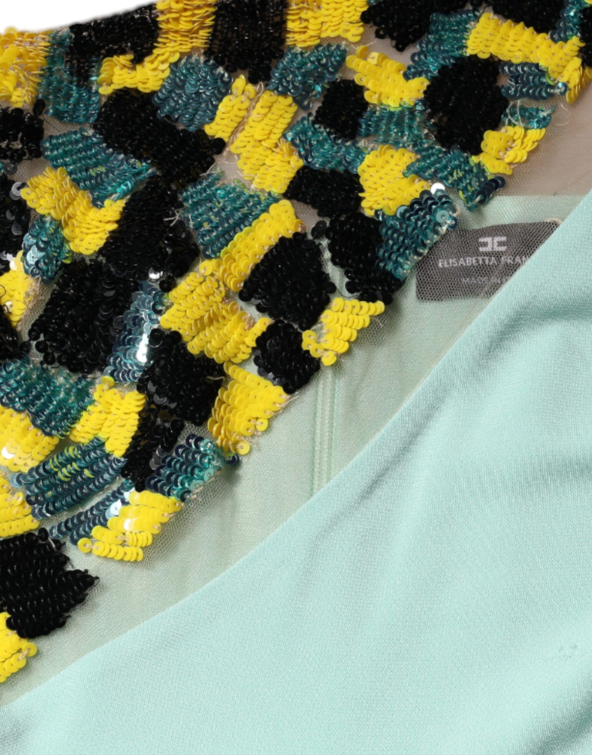 Elisabetta Franchi Mint Green One Shoulder Long Jumpsuit Dress