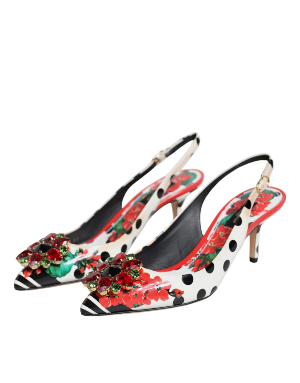 Gorgeous, 100% Authentic Dolce & Gabbana floral embellished slingback heels shoes.