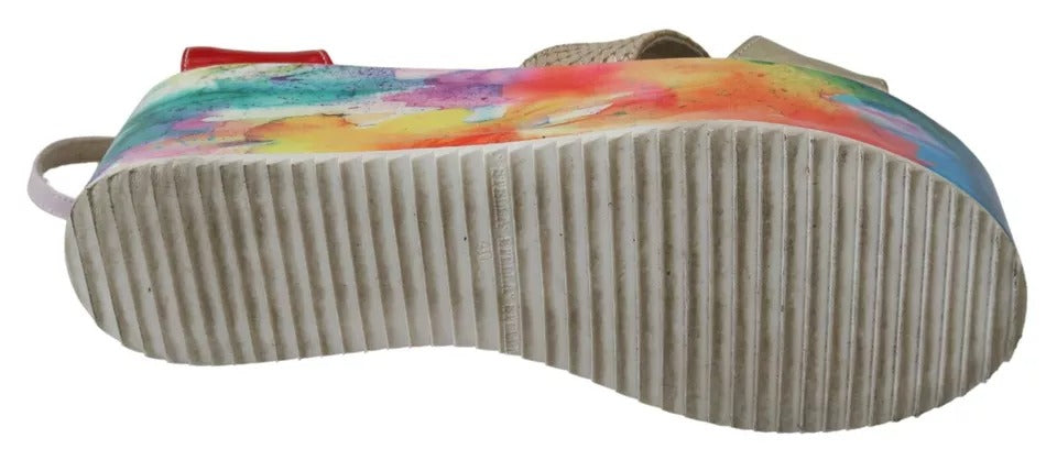EBARRITO Multicolor Leather Ankle Strap Wedge Heel Sandals Shoes