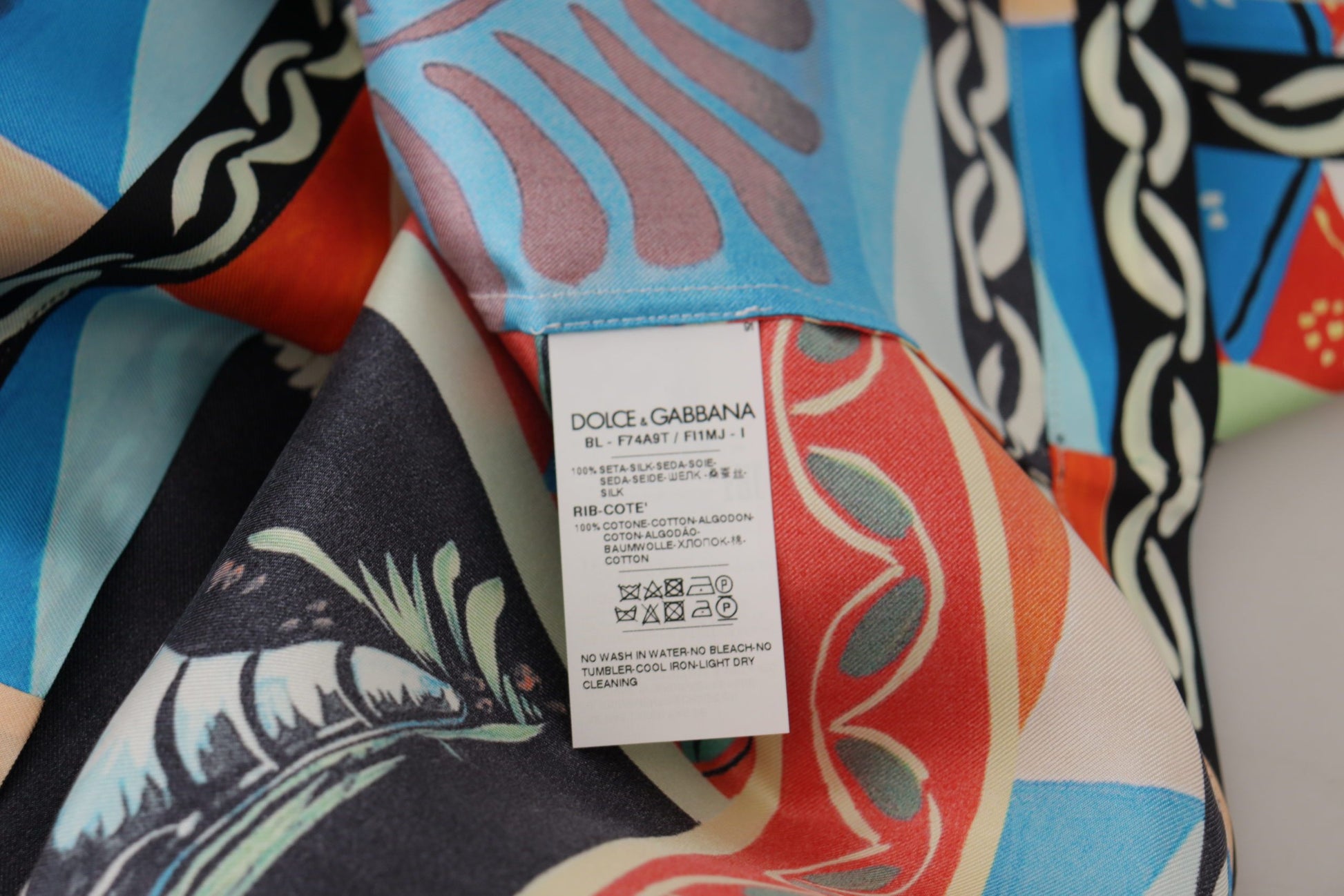 Dolce & Gabbana Multicolor Soldier Carretto Silk Top T-shirt