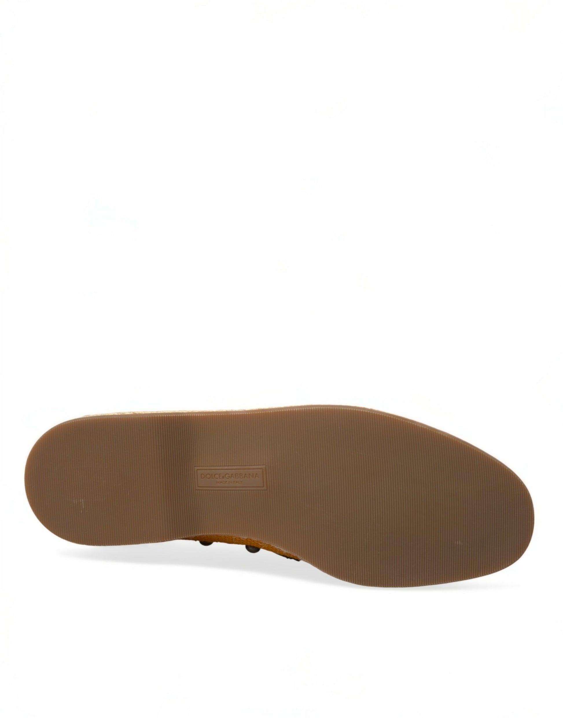 Dolce & Gabbana Orange Linen Leather Studded Loafers Shoes