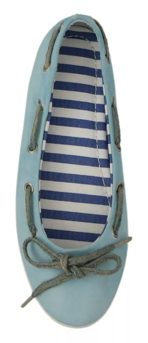 Pantofola D'Oro Sky Blue Suede Lace Bow Loafers Ballet Flat Shoes