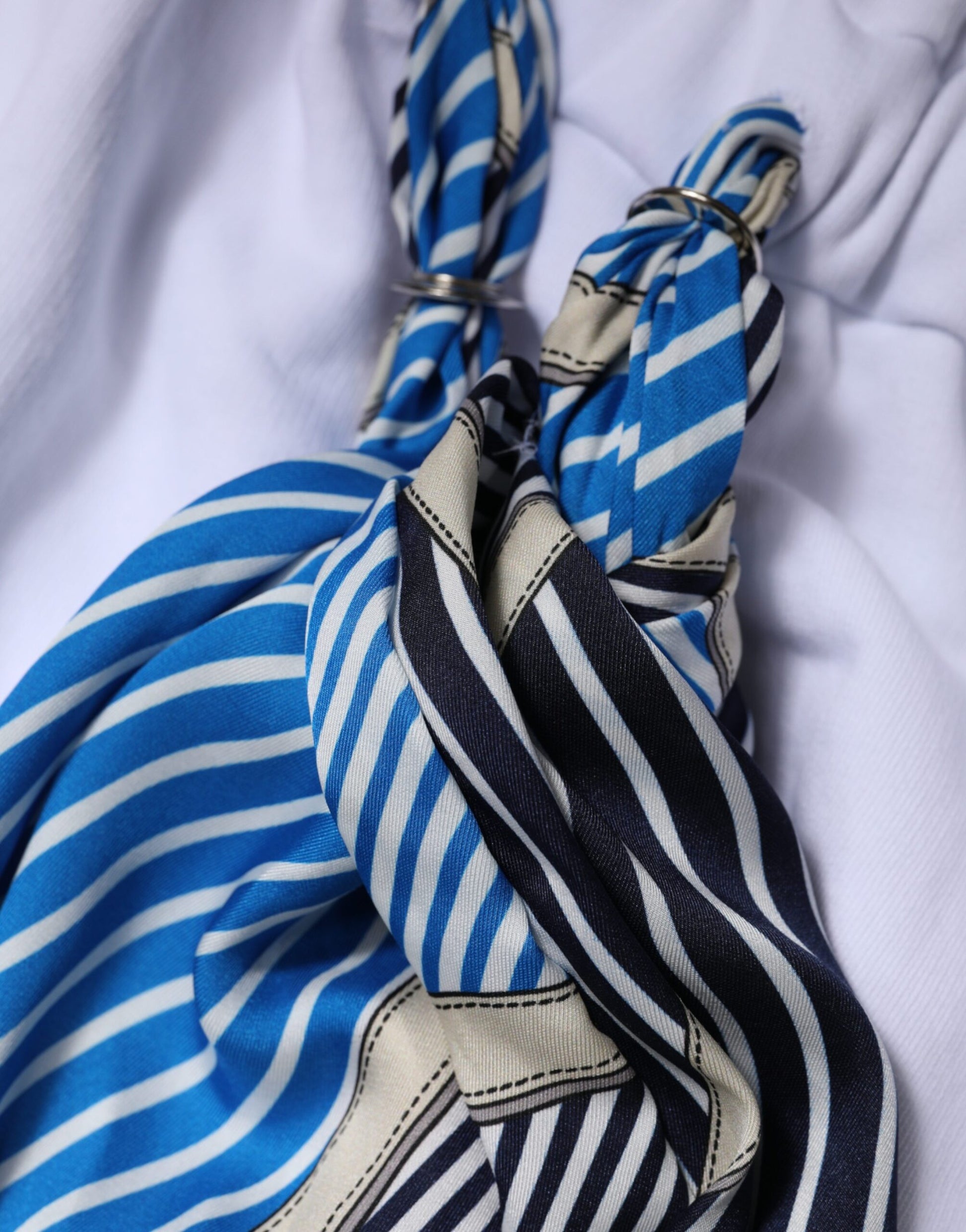 MSGM White Cotton Belted Long Sleeves Crew Neck Mini Dress
