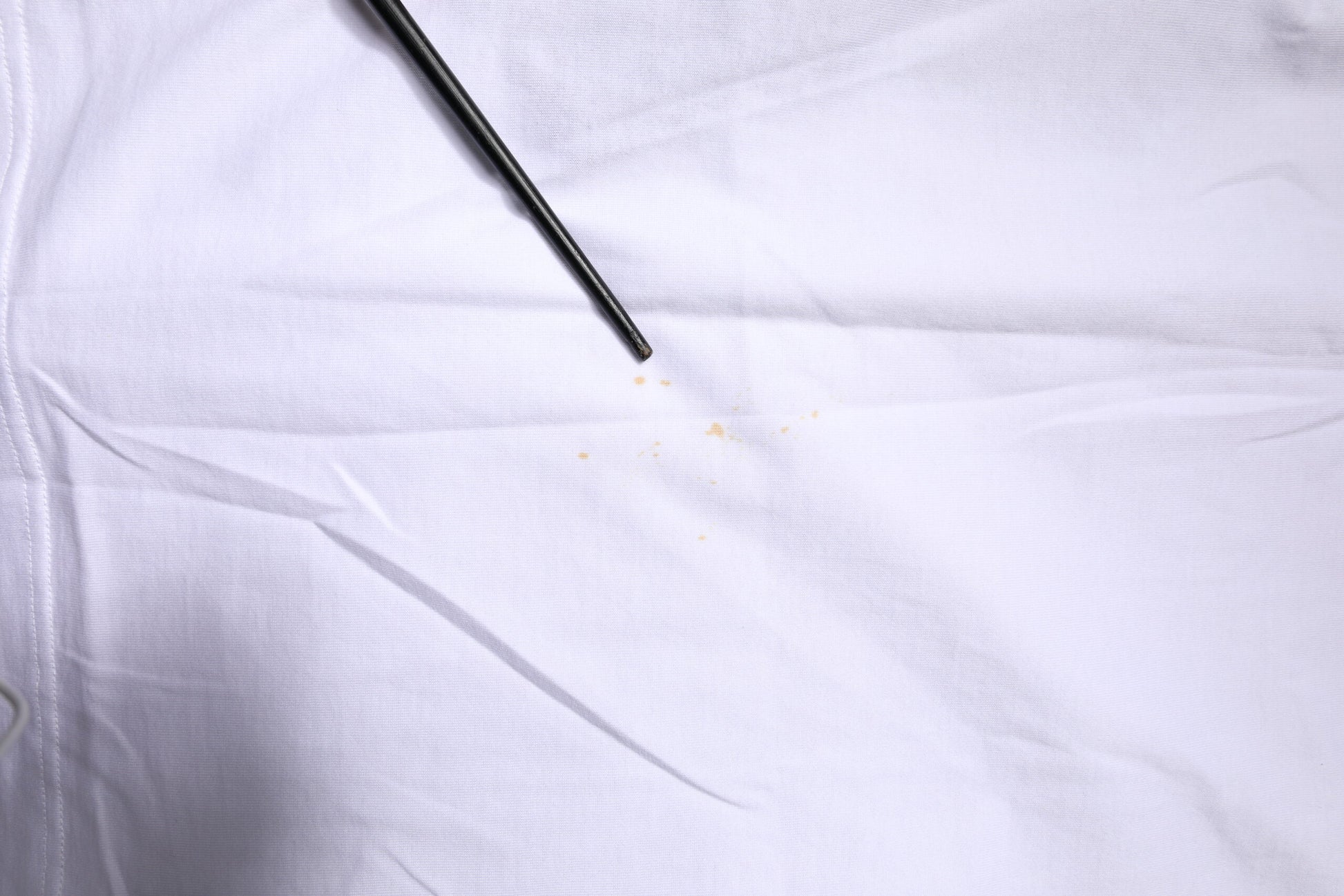 This item has a minor defect, there are stains and repaired holes on the front and back side (see pictures for details).