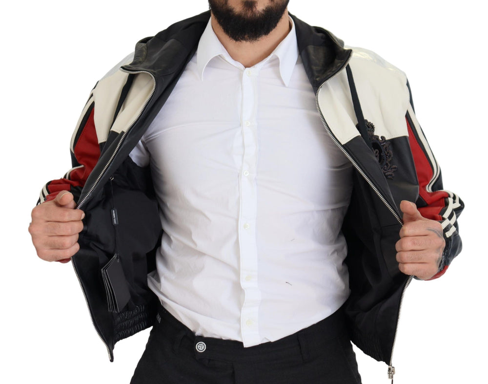 Dolce & Gabbana Black Leather Hooded Blouson Coat Jacket