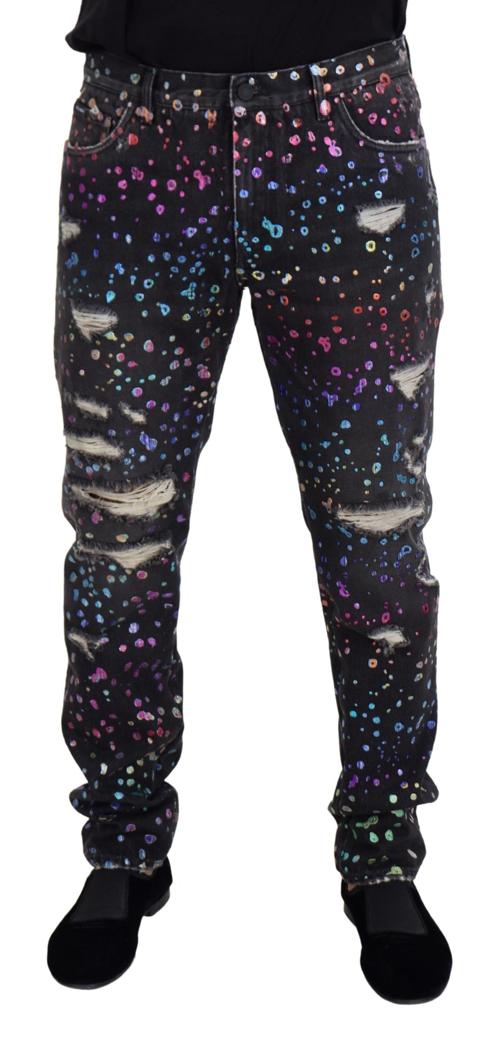 Gorgeous brand new with tags, 100% Authentic Dolce & Gabbana Jeans, with multicolor print. Model: Denim Pants Colour: Black Material: 100% Cotton Zipper closure Logo details Made in Italy