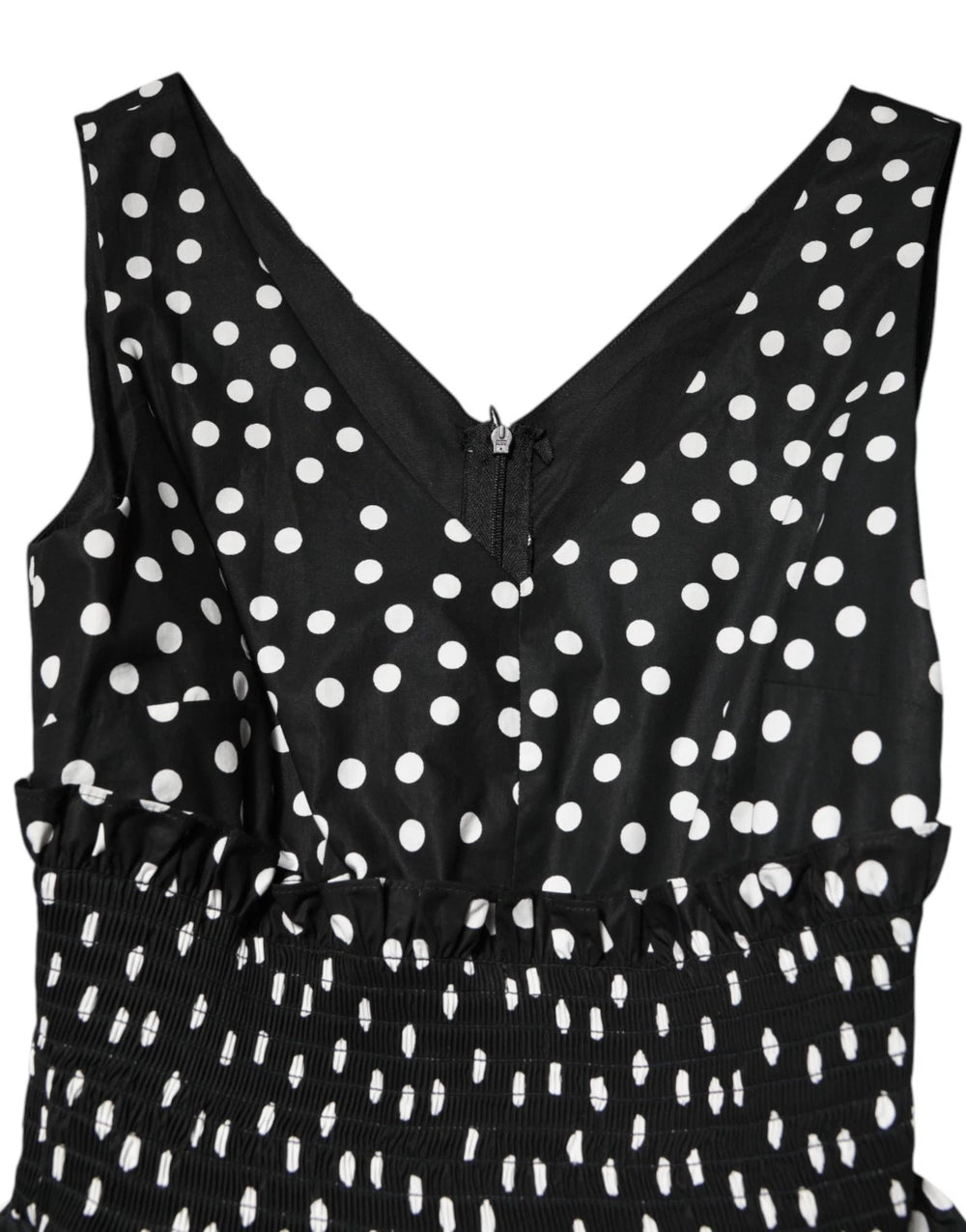 Dolce & Gabbana Black White Cotton Polka Dot Print V Neck Dress