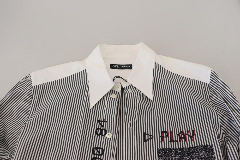 Dolce & Gabbana Black White Striped Printed Casual Cotton Shirt
