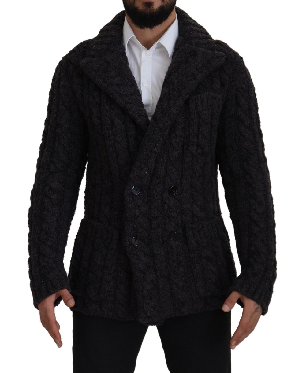 Dolce & Gabbana Black Wool Knit Double Breasted Coat Jacket