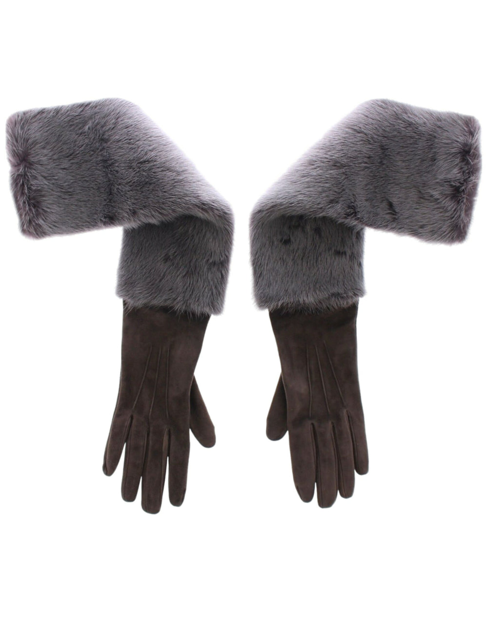Gorgeous brand new with tags, 100% Authentic Dolce & Gabbana gray mink fur and lamb leather suede elbow Gloves. This item comes from the exclusive MainLine Dolce & Gabbana collection. Model: Elbow length Logo details Made in Italy