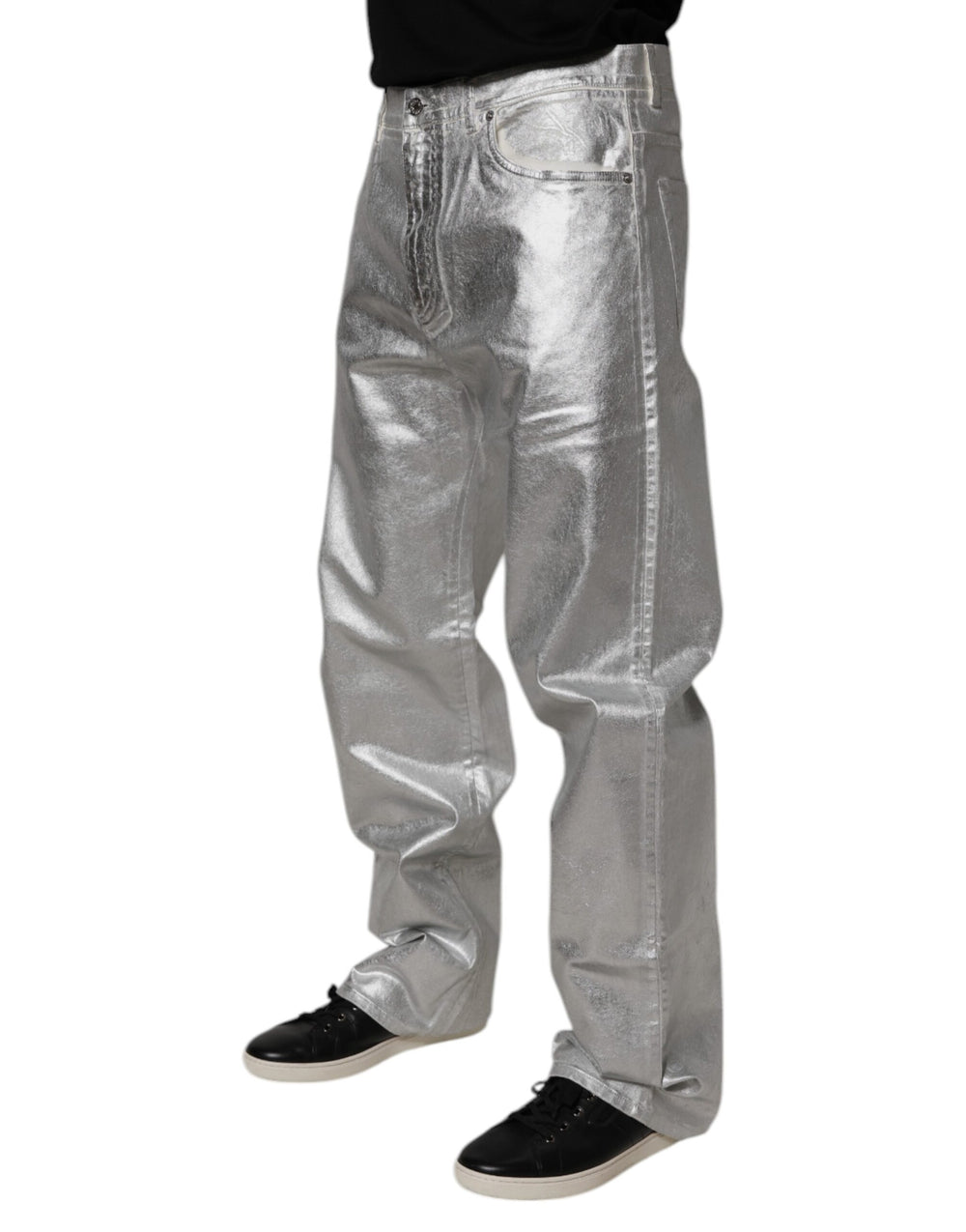 Gorgeous brand new, 100% Authentic Dolce & Gabbana cotton straight denim jeans. Art#: GWVNXD G8FZ4 Style: Straight denim Color: Metallic Silver Material: 98% Cotton 2% Elastane Fitting: Regular fit Button and zipper closure Logo Details Made in Italy Very exclusive and high craftsmanship