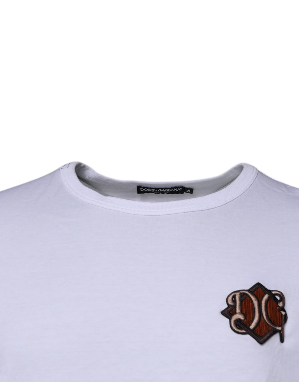 Dolce & Gabbana White DG Embroidery Cotton Crew Neck T-shirt