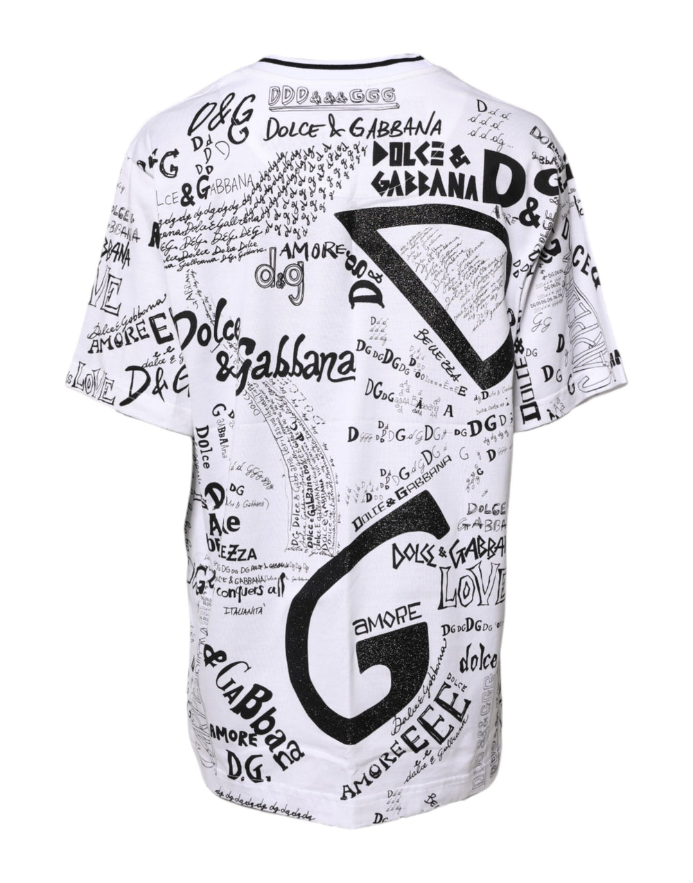 Dolce & Gabbana White Graffiti Print Cotton Crew Neck T-shirt