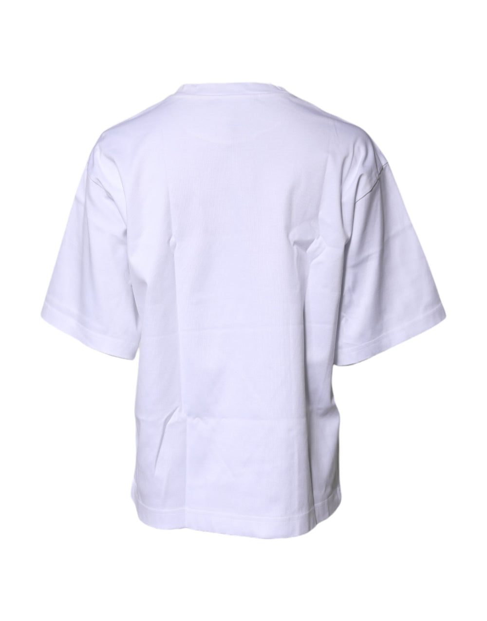 Dolce & Gabbana White Printed Cotton Round Neck Top T-shirt