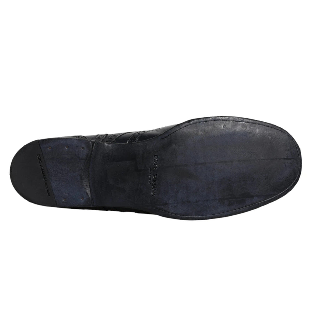 Dolce & Gabbana Dark Blue Leather Derby Wingtip Formal Shoes