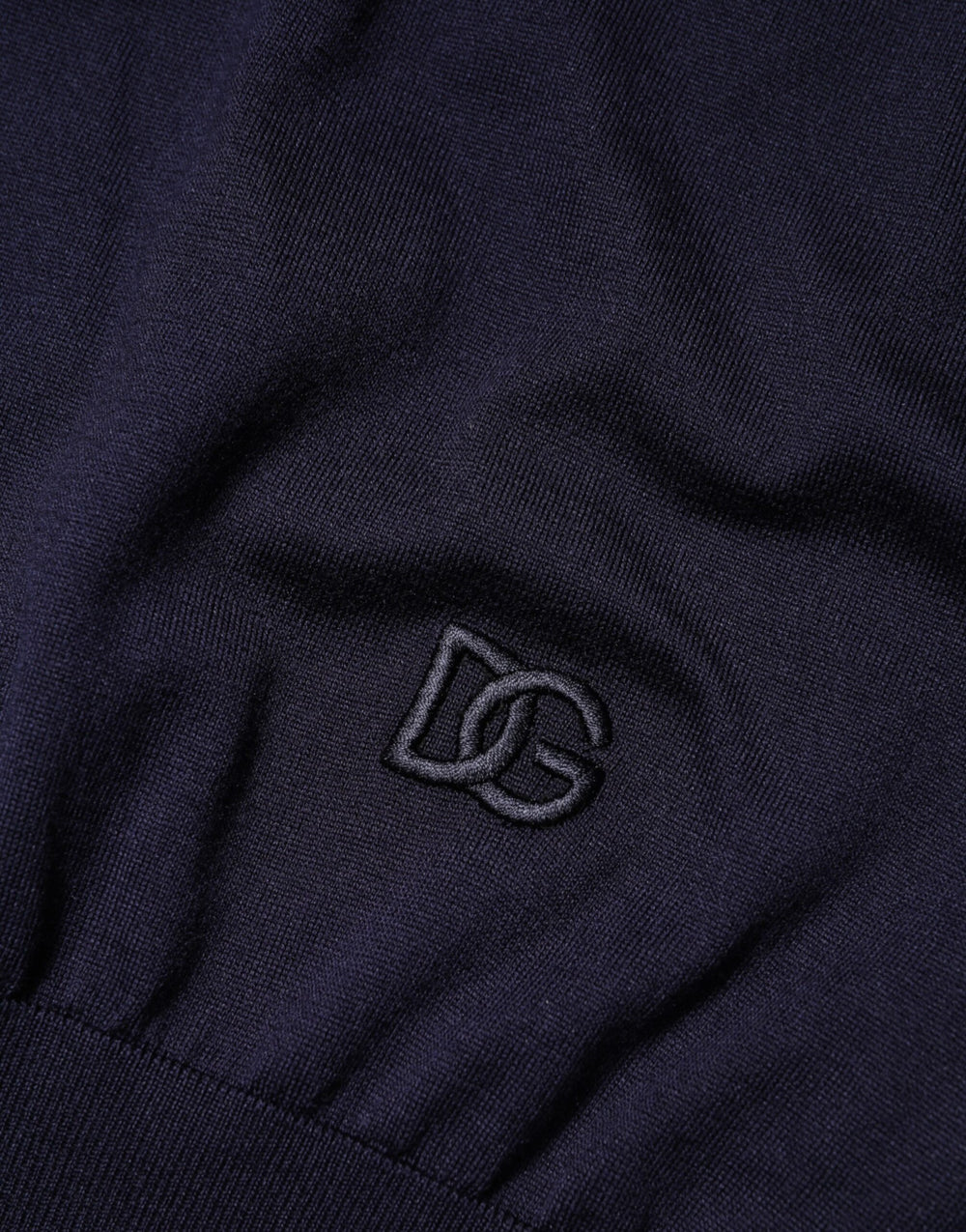 Dolce & Gabbana Dark Blue Silk Crew Neck Short Sleeves T-shirt