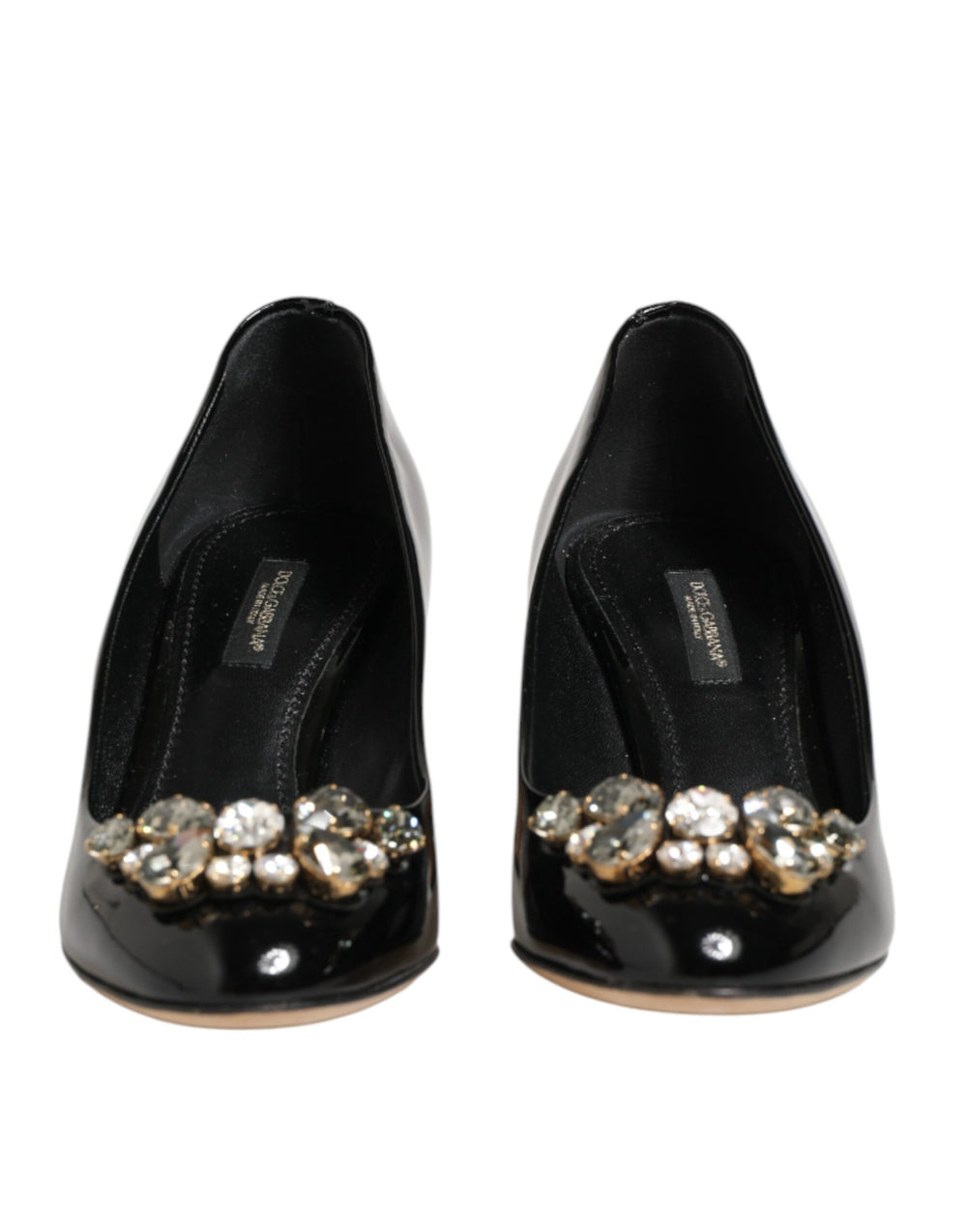Dolce & Gabbana Black Leather Crystals Heels Pumps Shoes