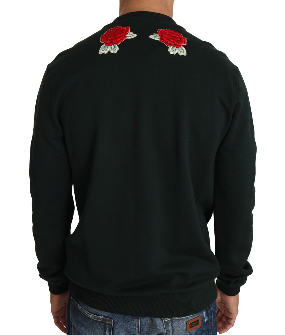 Dolce & Gabbana Green Crystal Heart Roses Gun Sweater